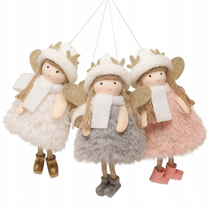 Wybierz zestaw ozdób świątecznych na choinkę Aniołki z futerkiem i czapką renifera i stwórz przytulny klimat świąt w domu. Świąteczne ozdoby choinkowe w pastelowych barwach idealne do stroików, girland i pakowania prezentów!