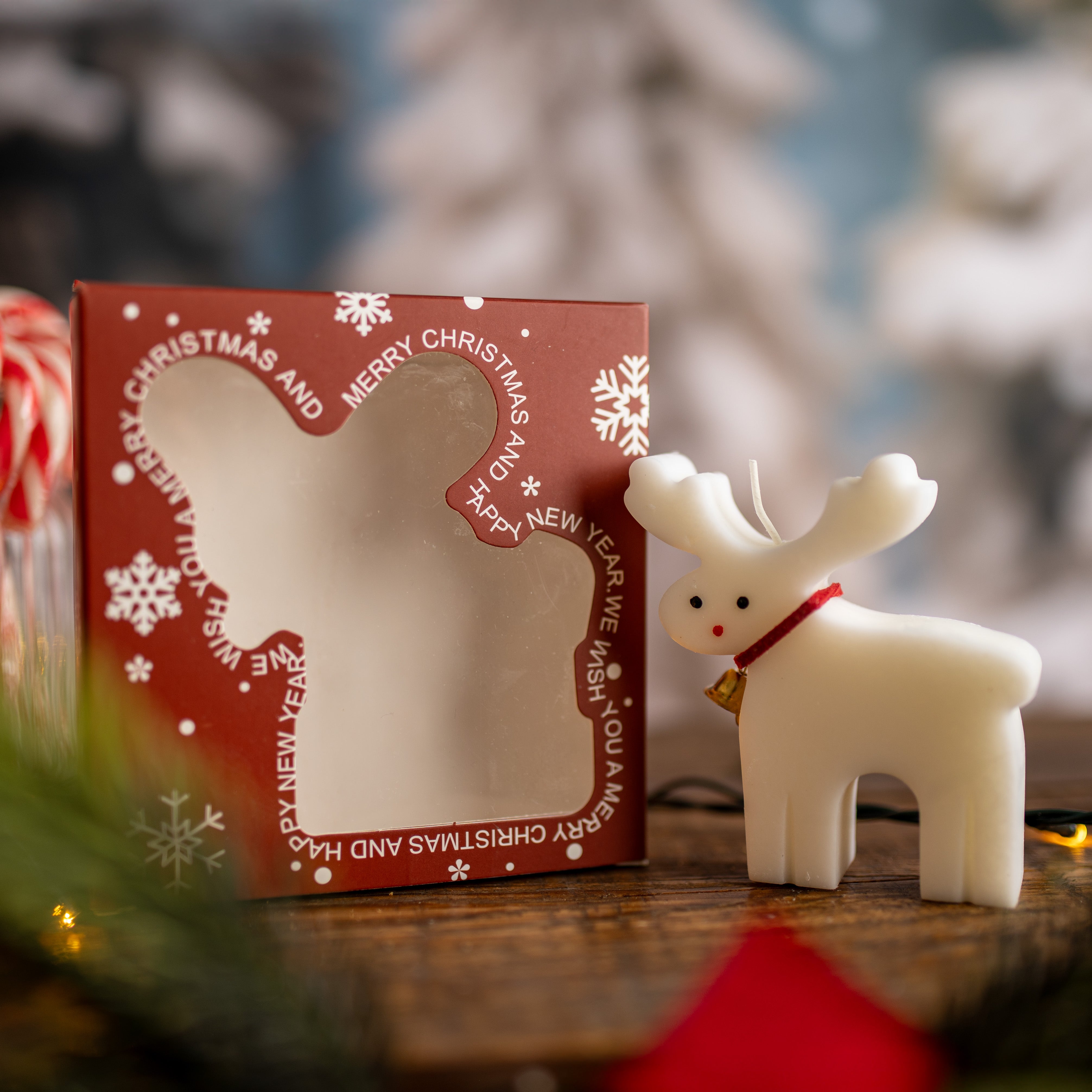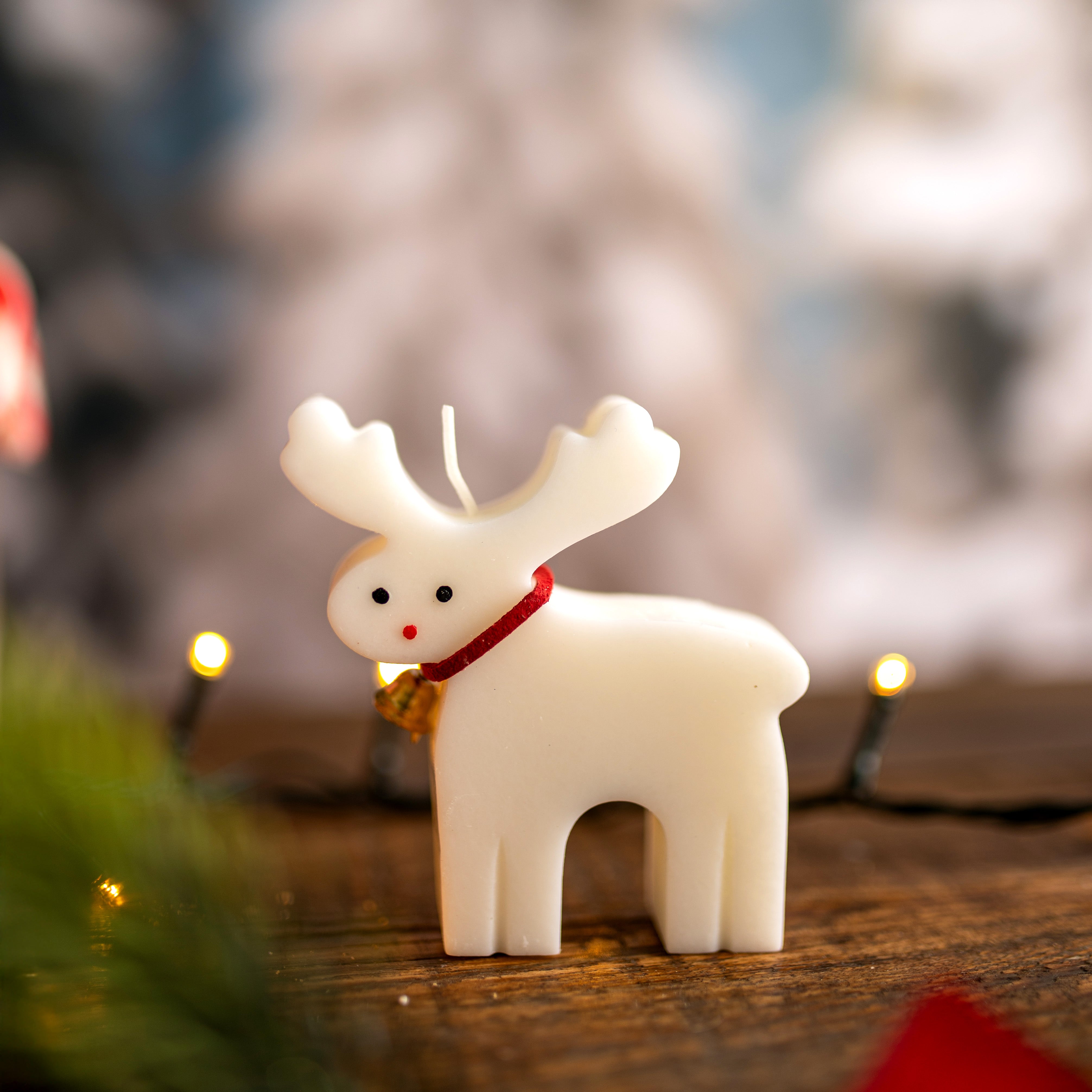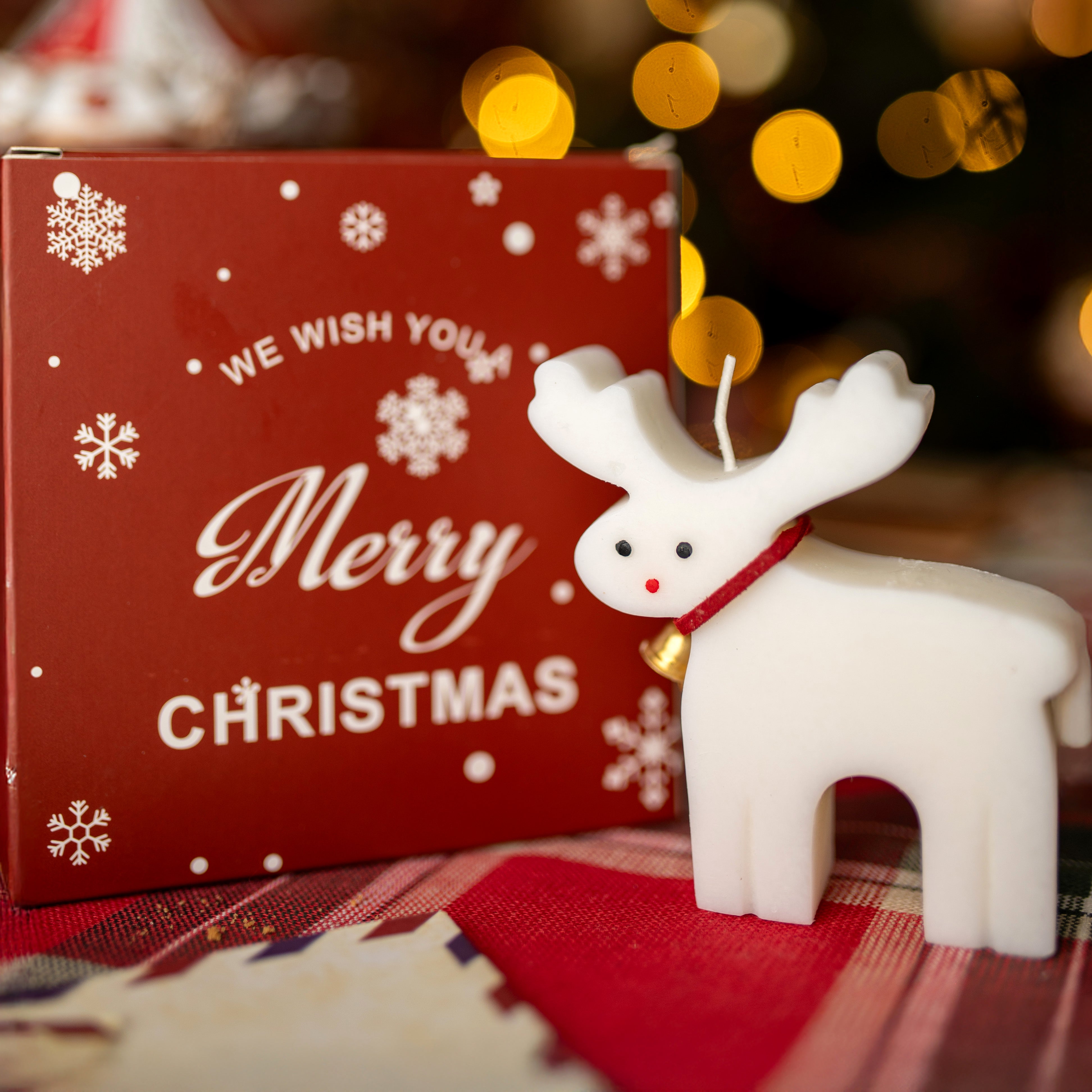 - Świąteczna świeca sojowa w kształcie renifera: Urocza dekoracja bożonarodzeniowa, która jednocześnie wypełnia wnętrze przyjemnym aromatem