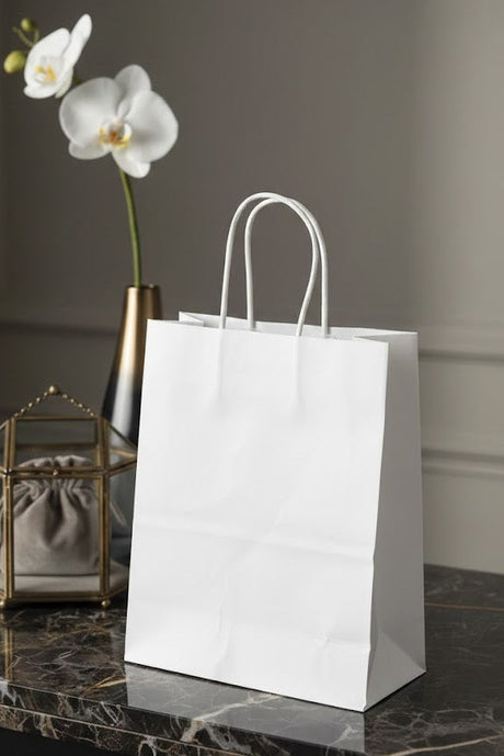 Torba Papierowa z Uchwytem Skręcanym 180x80x220mm Biała Premium