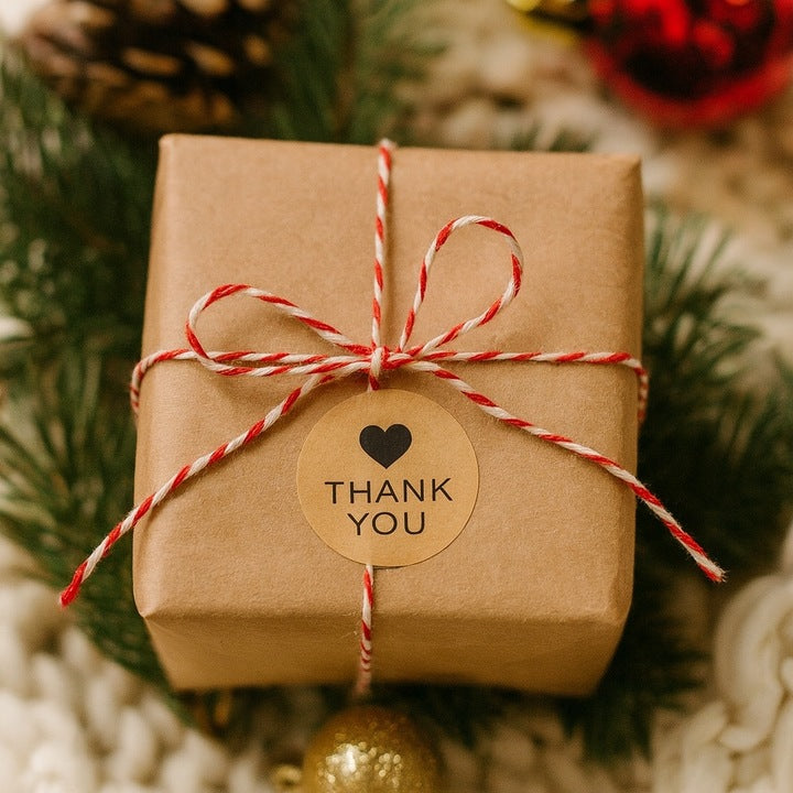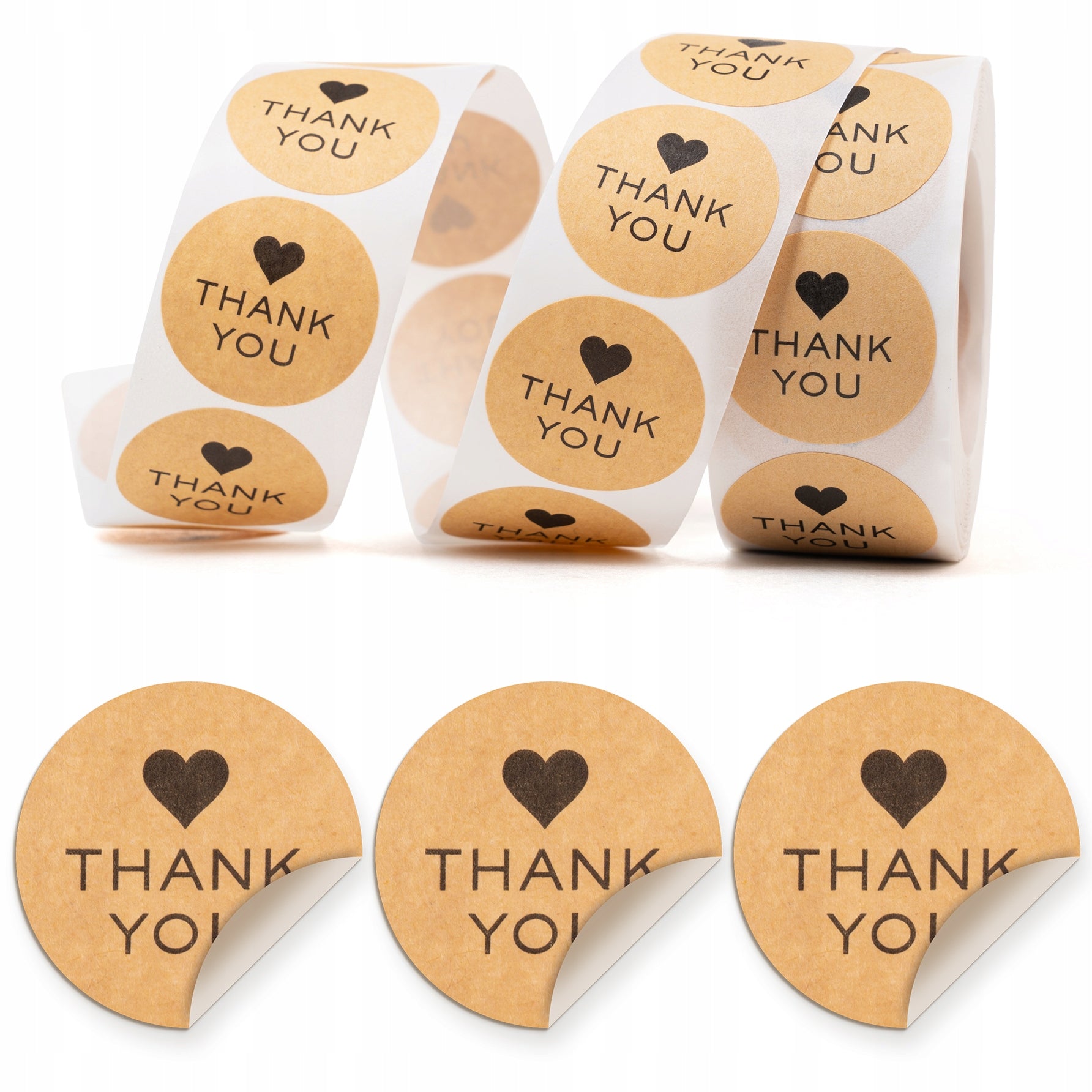 Vyberte si samolepky s poděkováním ve tvaru srdce . Kulaté samolepicí etikety o průměru 2,5 cm na roli 500 kusů, ve stylu řemeslných výrobků. Dodejte svým dárkům, balíčkům a produktům elegantní nádech během několika sekund!