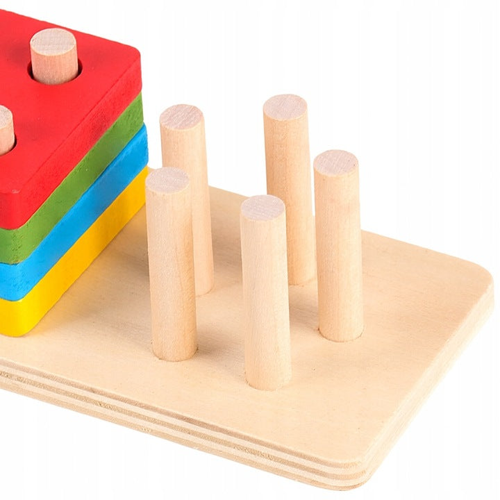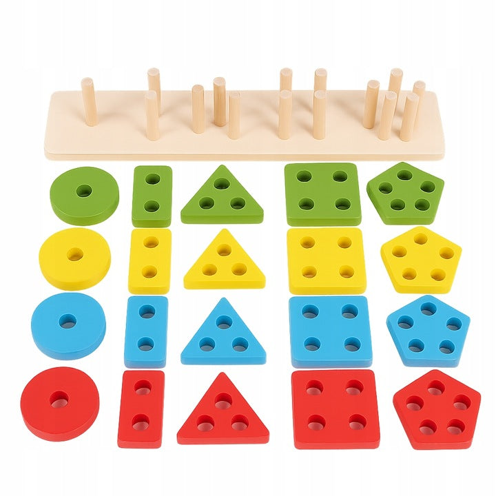 Dřevěná vzdělávací skládačka s geometrickými tvary pro děti od 2 let, která rozvíjí jemnou motoriku, koordinaci rukou a očí a logické myšlení. Objednejte si tyto vzdělávací kostky na třídění tvarů s barevnými dílky a pevnou dřevěnou základnou a dopřejte svému dítěti chytrou hru každý den!