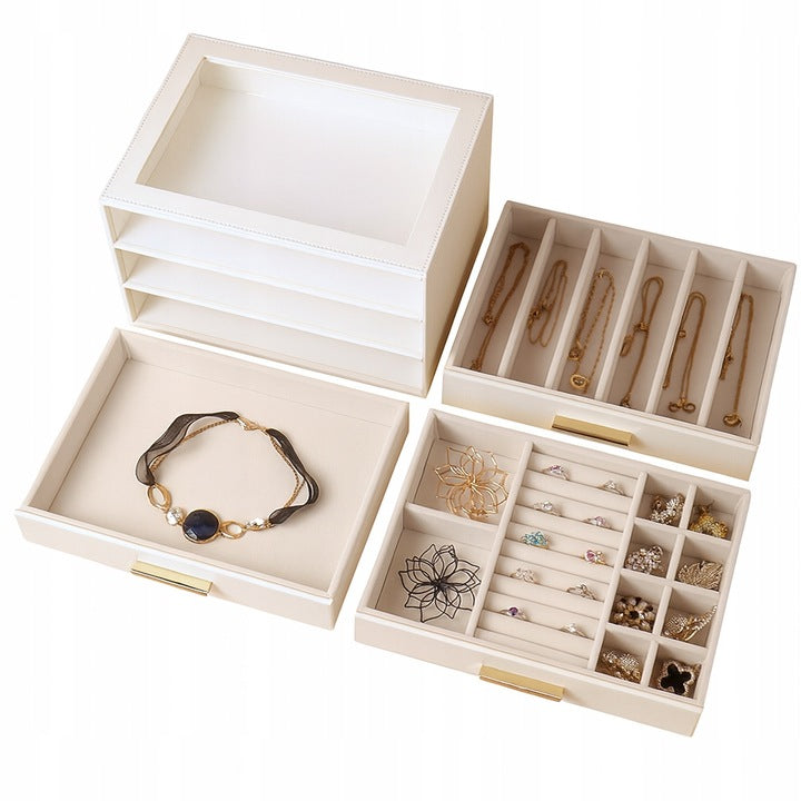 • Snadná organizace: Vyhrazené zóny pro prsteny, náušnice, řetízky a hodinky zabraňují zamotávání a poškrábání