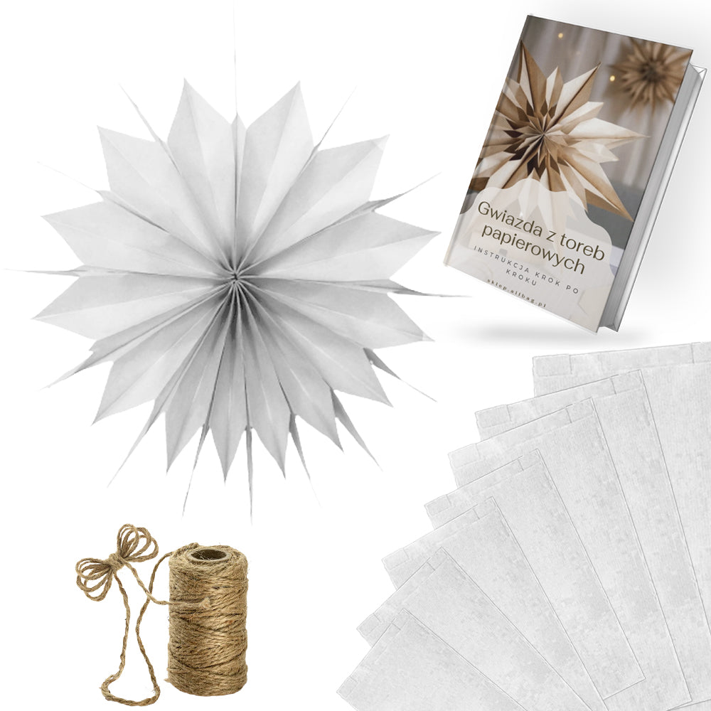 DIY Hvězda z papírových sáčků BÍLÁ - sada 4 ks.