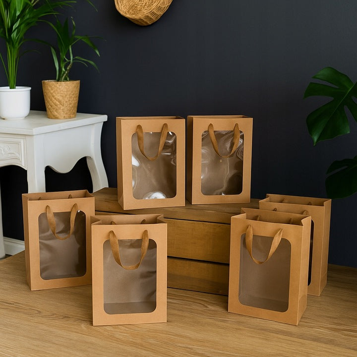 Vyberte si hnědé papírové tašky s okénkem. Zvolte přírodní kraftový papír a elegantní design, aby každý dárek vypadal profesionálně, esteticky příjemně a na první pohled skutečně jedinečně.