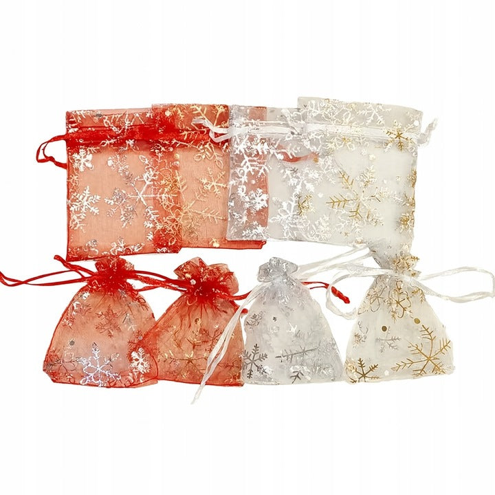 Vyberte si tyto dárkové tašky z organzy o rozměrech 100x150 mm (4 ks). Elegantní dárkové tašky na šperky, sladkosti a drobné dárky. Vyberte si bílé a červené dárkové tašky se stahovací šňůrkou.