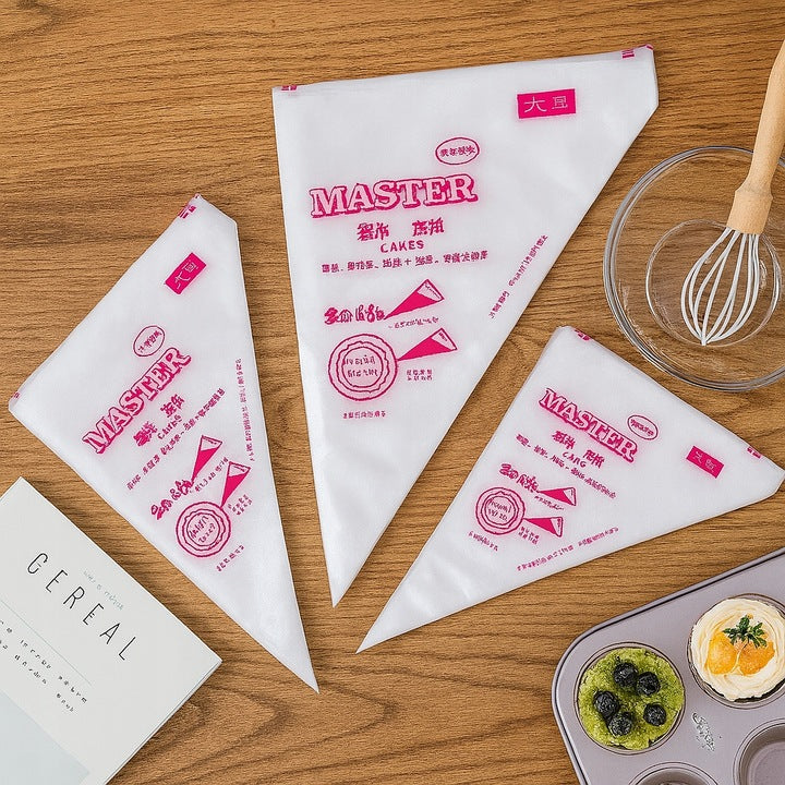 Disposable pastry bags in size S are an indispensable accessory for anyone decorating baked goods, both professionally and as a hobby. Their compact size and non-slip texture make them ideal for precisely applying creams, icings, and fillings.