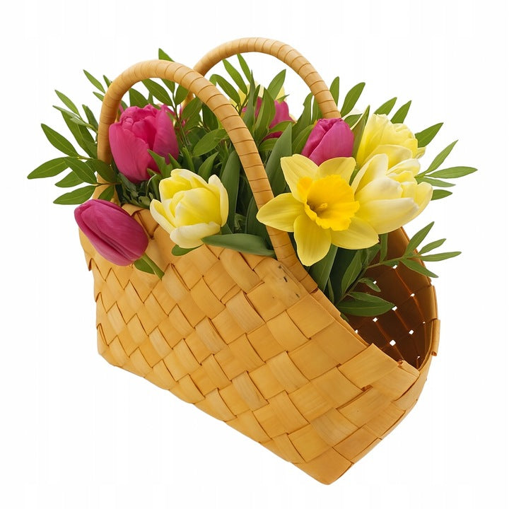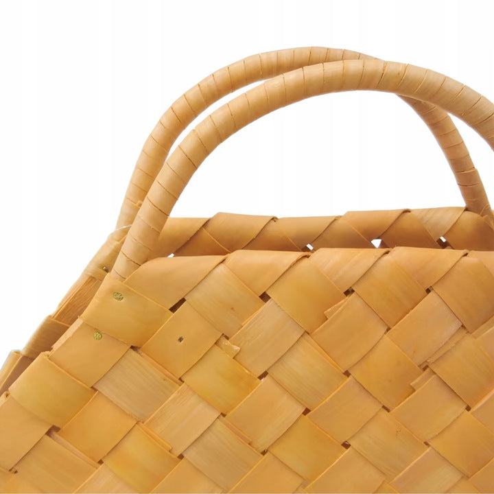 Woven bamboo basket with handle. A natural plant pot holder and organizer for home, garden, and balcony. Choose this boho bamboo basket for storage and decoration and transform your interior in minutes!