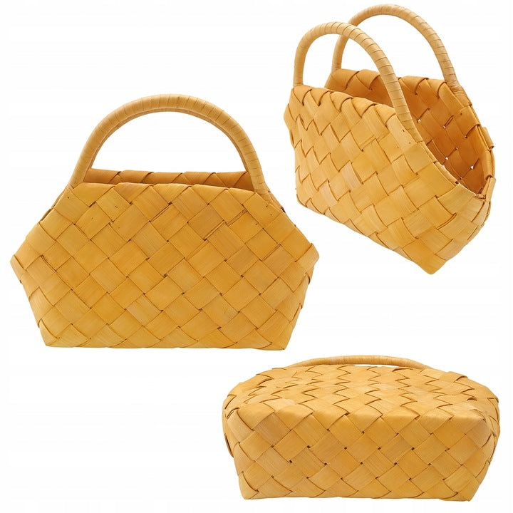 Woven bamboo basket with handle