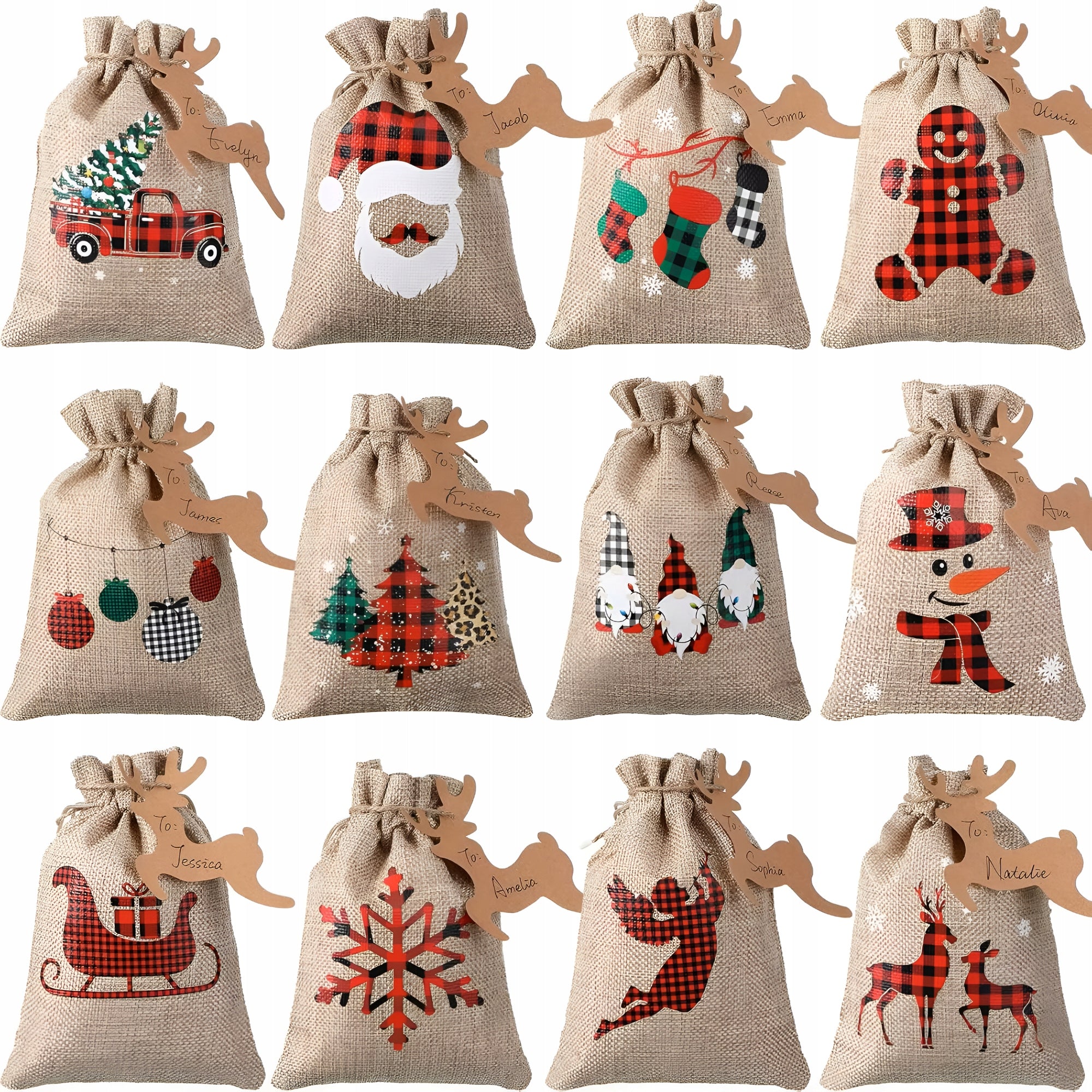 Kalendarz Adwentowy z woreczkami jutowymi 12szt.