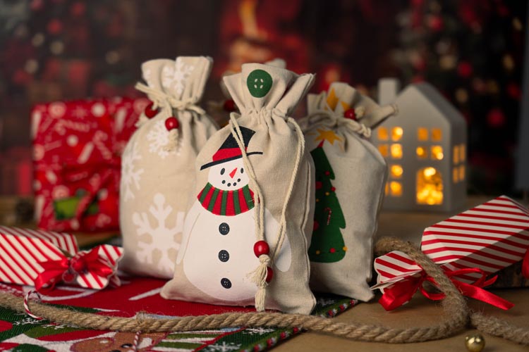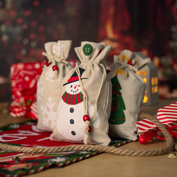 Cotton bags 140x225mm with a Christmas motif are aesthetic and practical a choice for Christmas packaging that will not only add charm, but also emphasize the festive atmosphere of each gift!