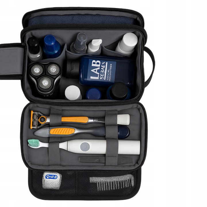 Choose order while traveling and style in every detail. Choose a lightweight, spacious men's travel cosmetics bag that will take care of your accessories in every situation. A travel organizer that combines functionality, durability, and elegance!
