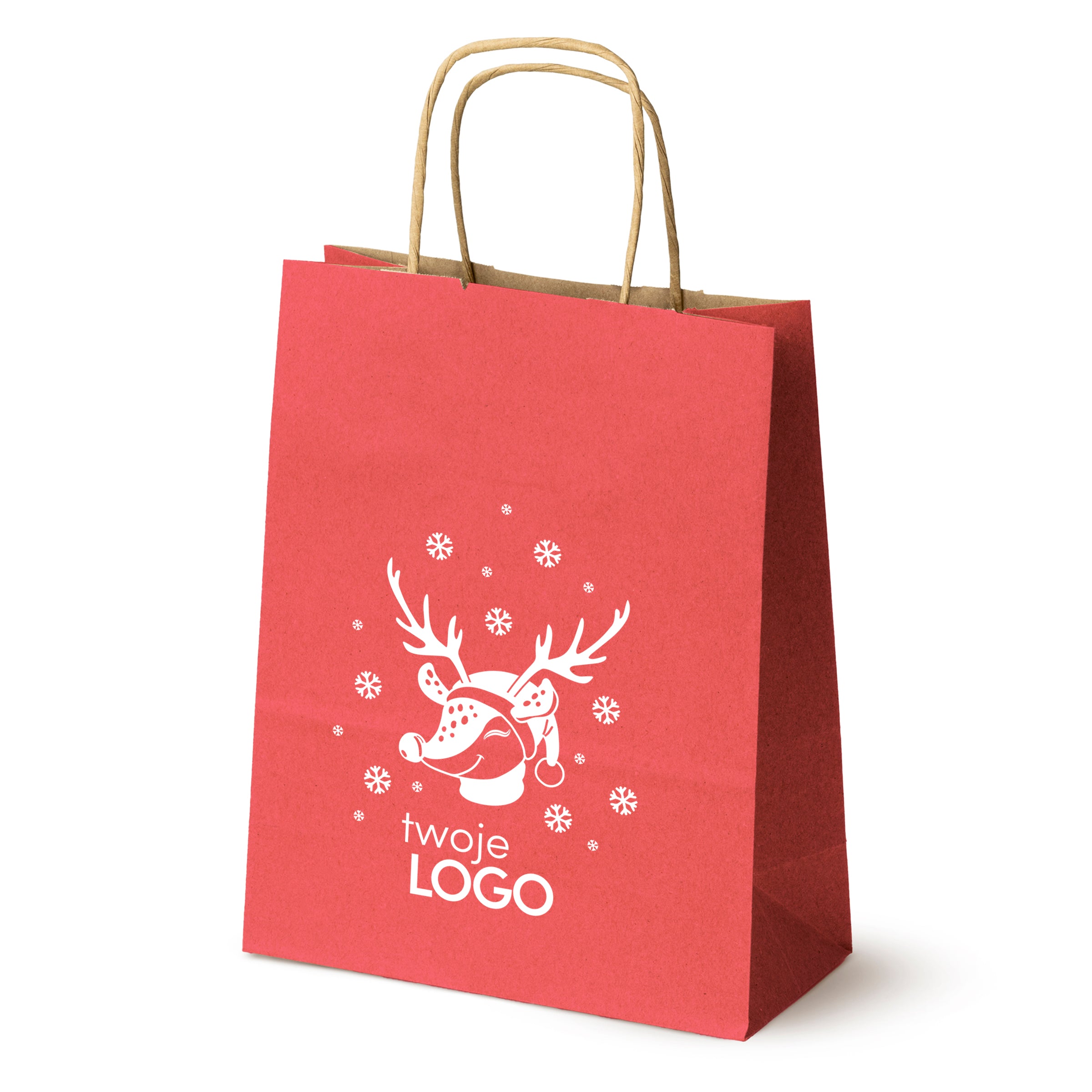 Christmas paper bag Red 50pcs 180x80x225mm +LOGO (23 designs) - SW-01 is backordered and will ship as soon as it is back in stock.