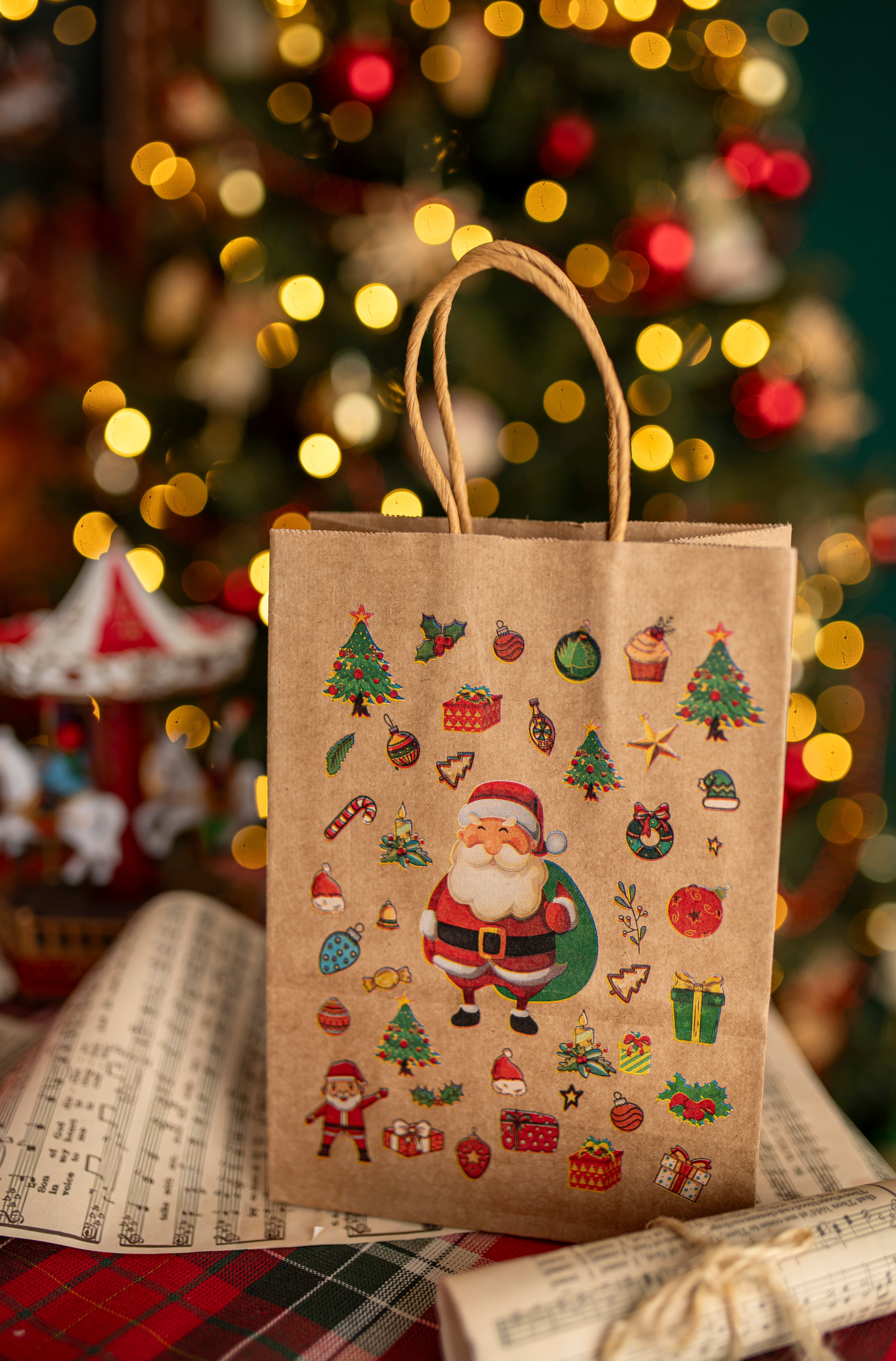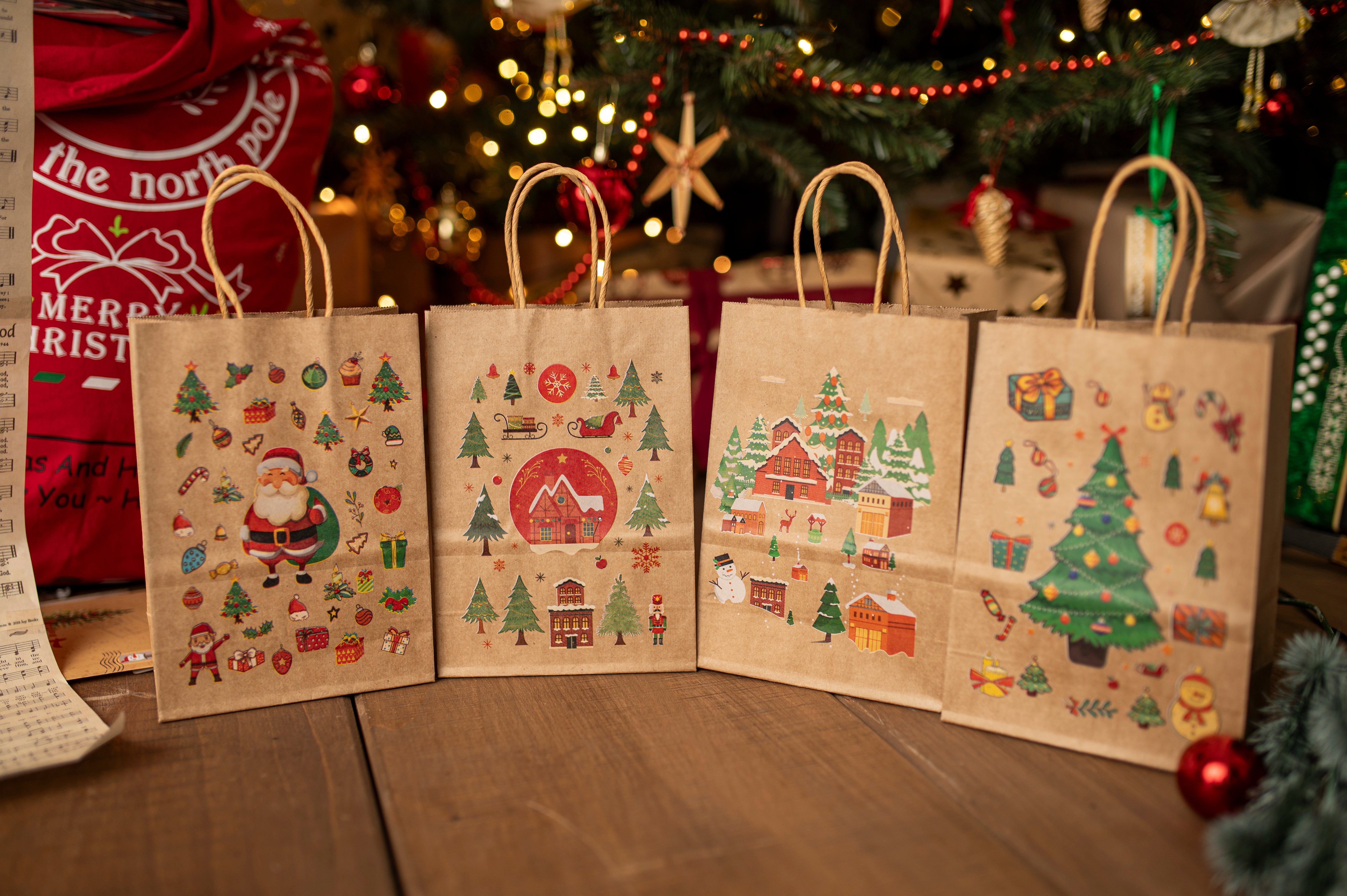 - Application: Paper bags are perfect for wrapping Christmas gifts, they can also be used as shopping bags or as a decorative element during holiday parties .