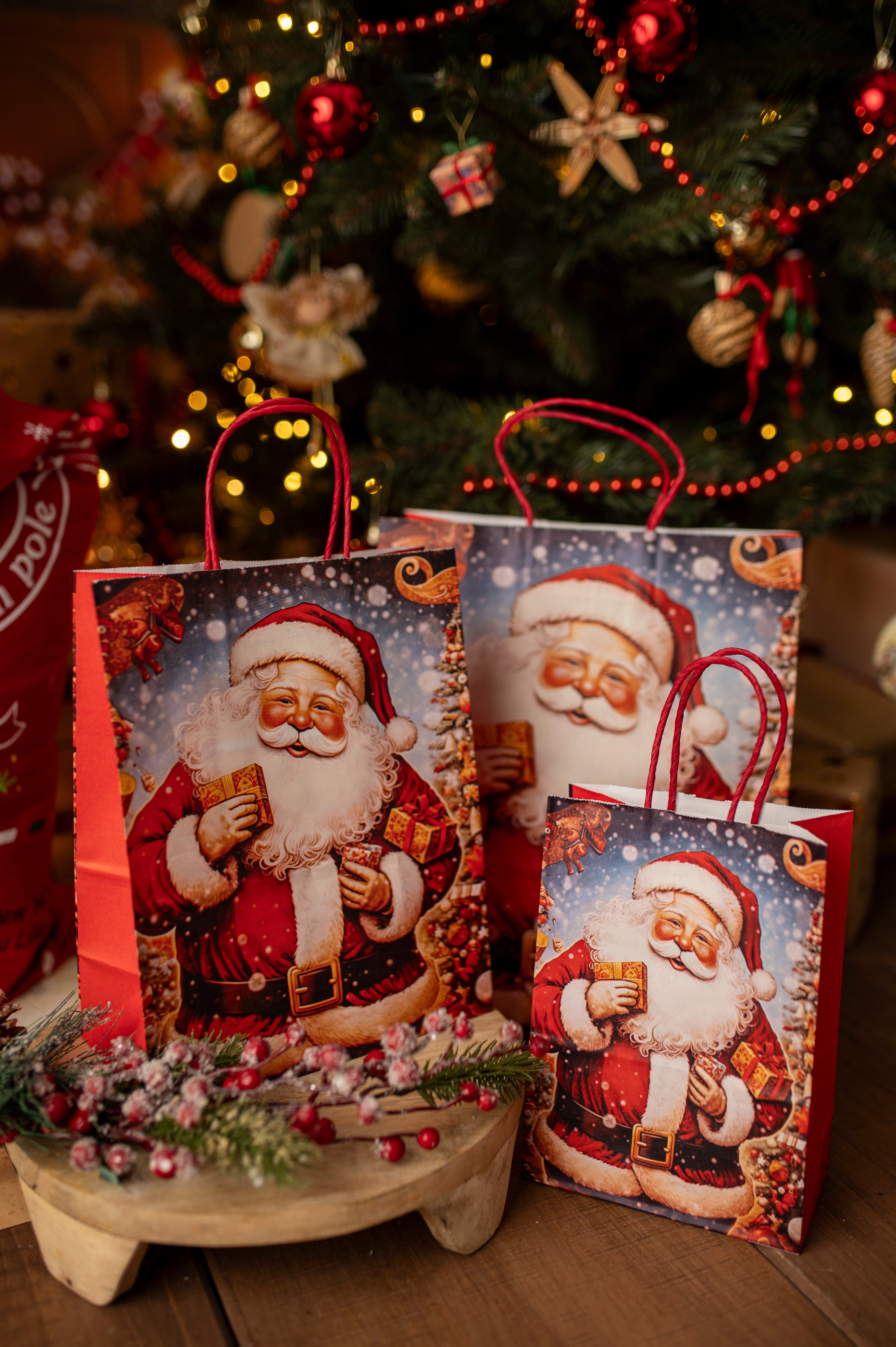 - Application: Paper bags are perfect for wrapping Christmas gifts, they can also be used as shopping bags or as a decorative element during holiday parties .