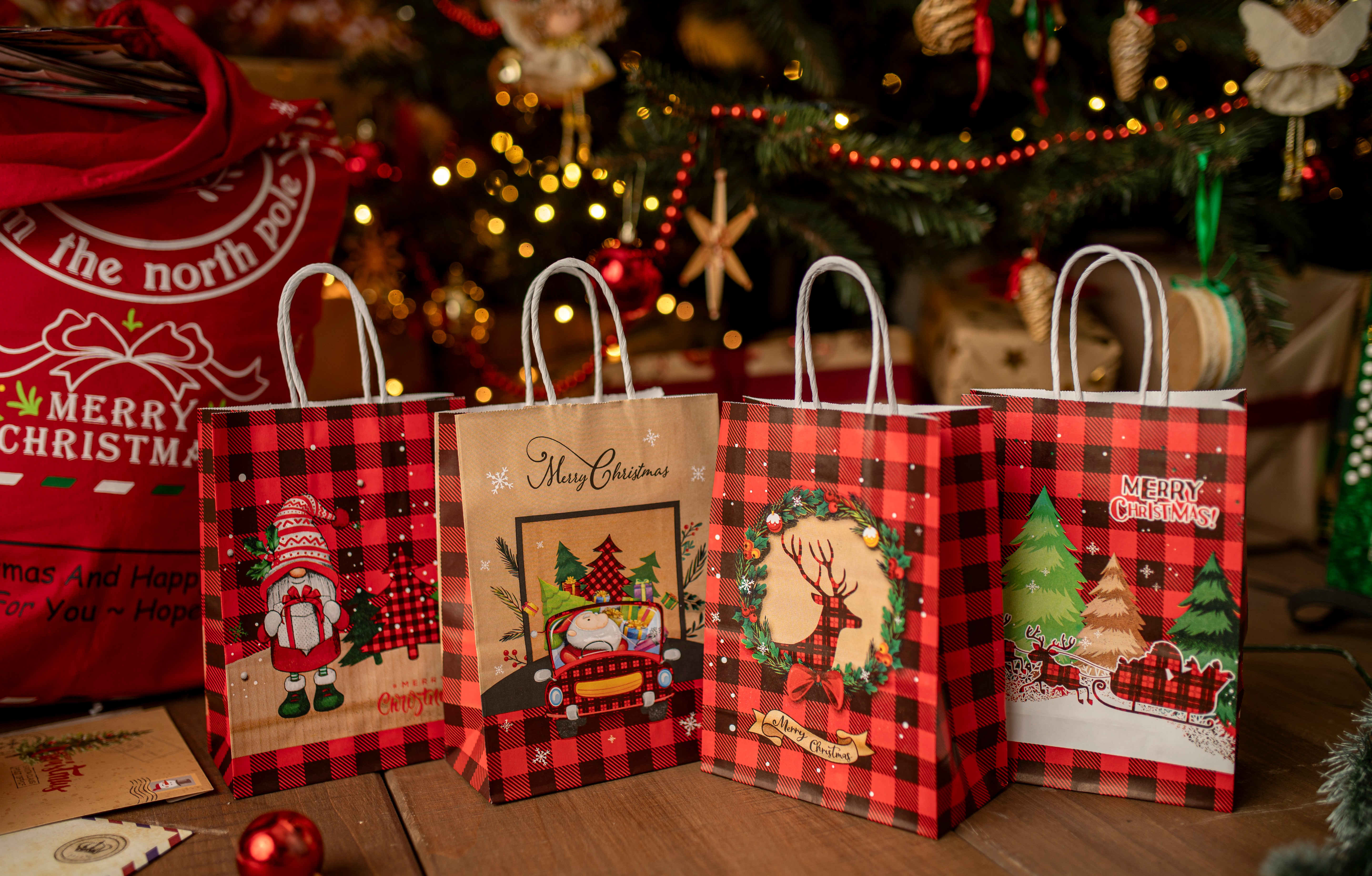 - Application: Paper bags are perfect for wrapping Christmas gifts, they can also be used as shopping bags or as a decorative element during holiday parties .