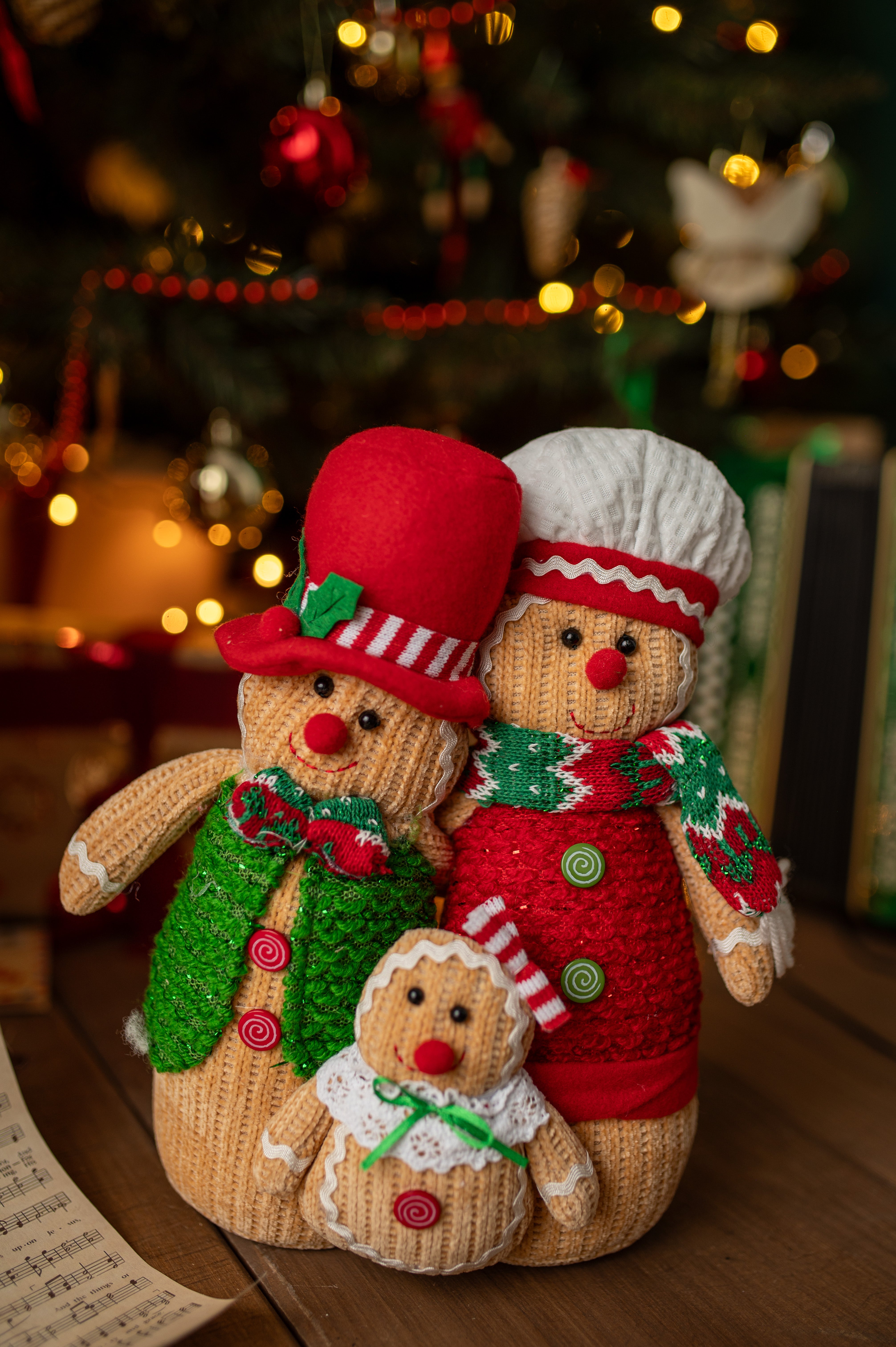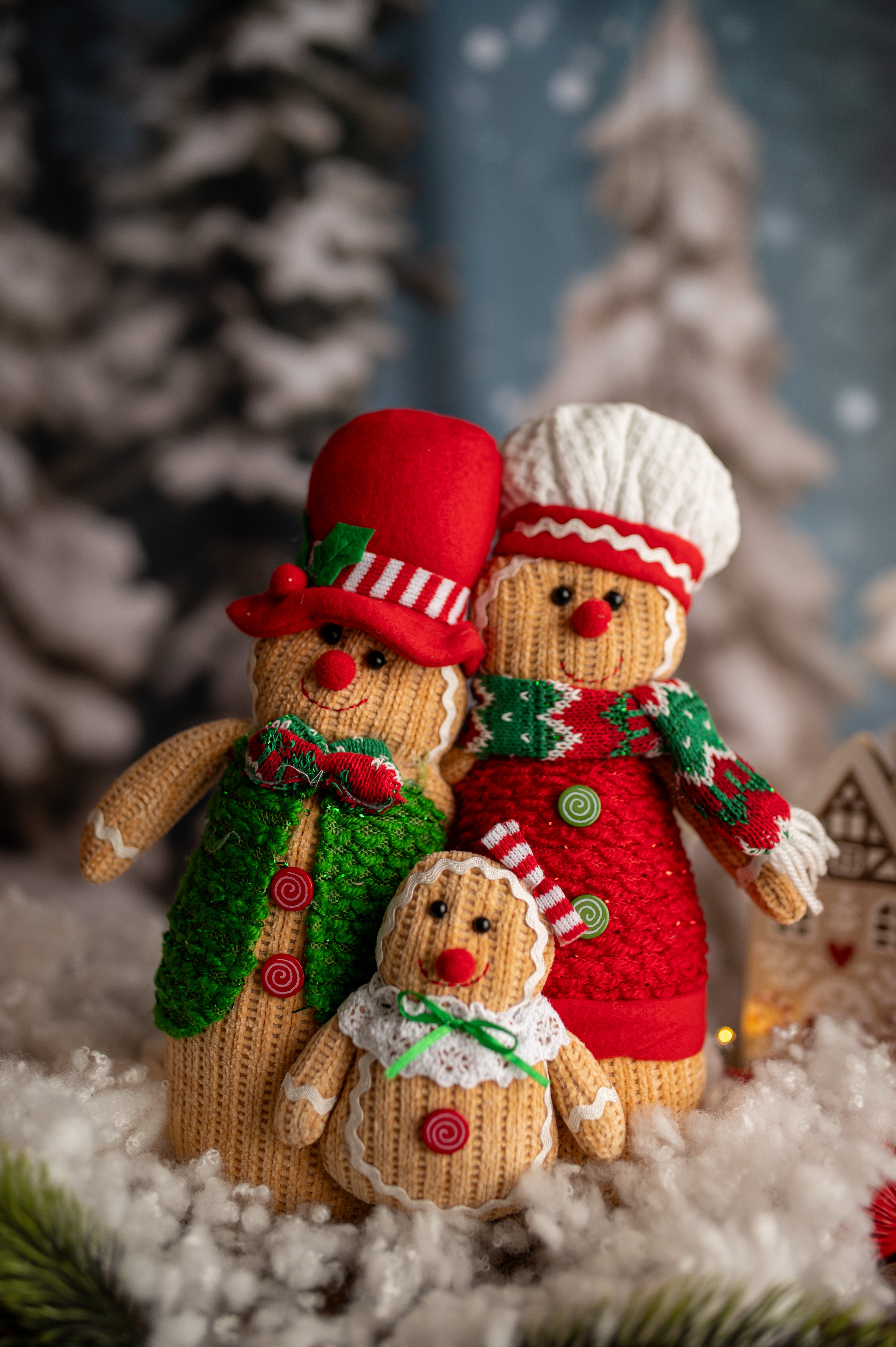 A set of Christmas figurines made of Gingerbread Family fabric