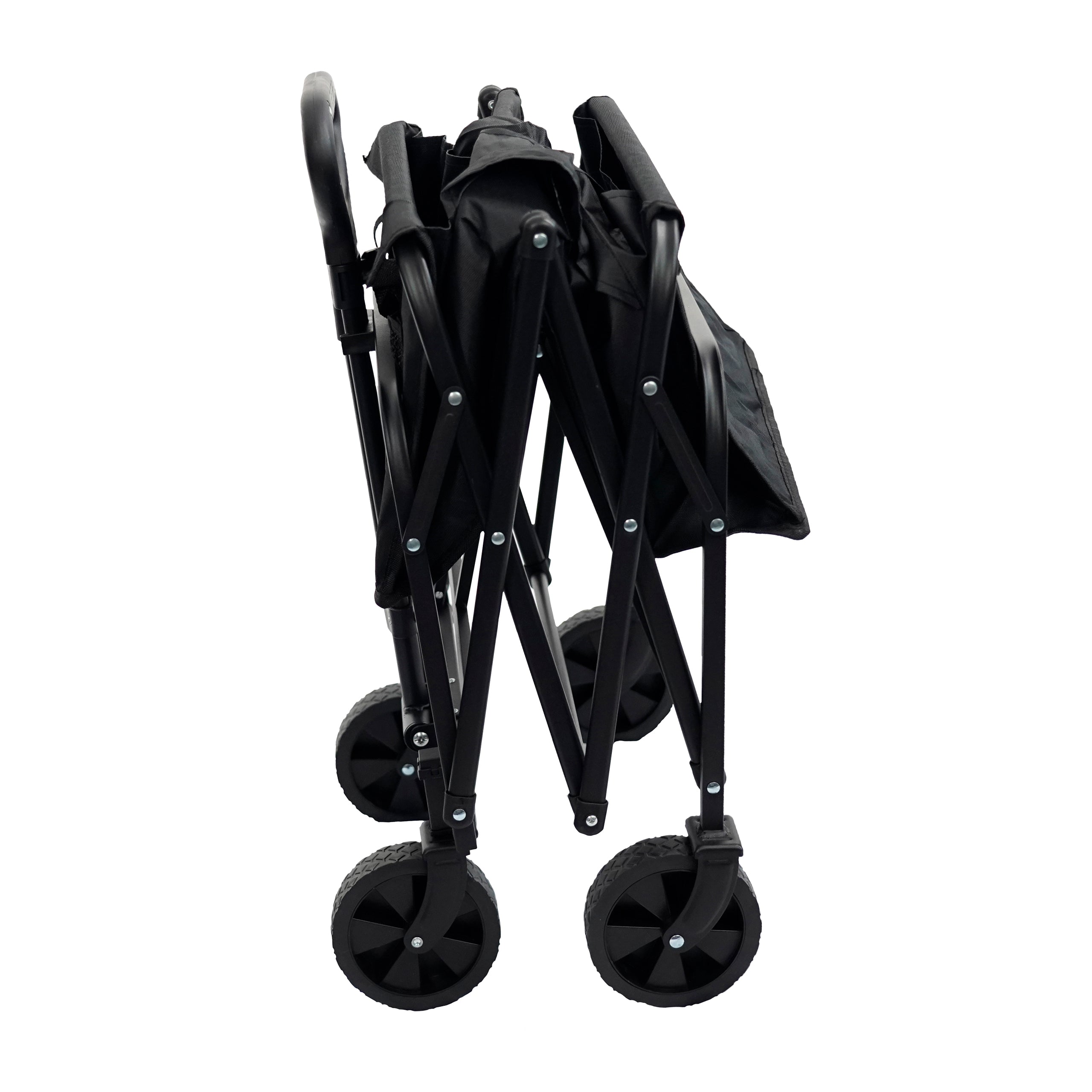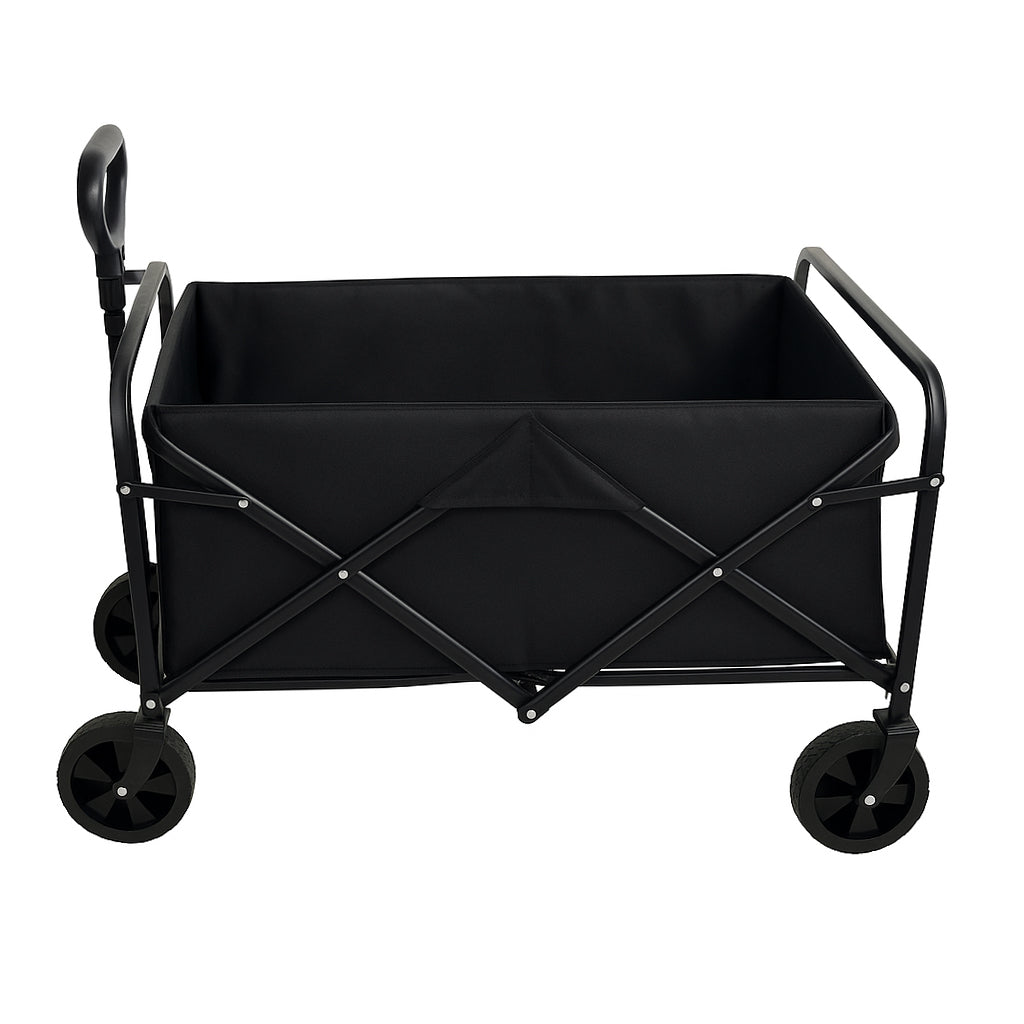 Thanks to the telescopic handle and swivel front wheels, maneuvering is exceptionally easy – even on uneven terrain. The structure folds quickly and effortlessly, allowing for easy storage and transport, for example, in the trunk of a car. Additional front pockets allow you to always have your essentials close at hand.