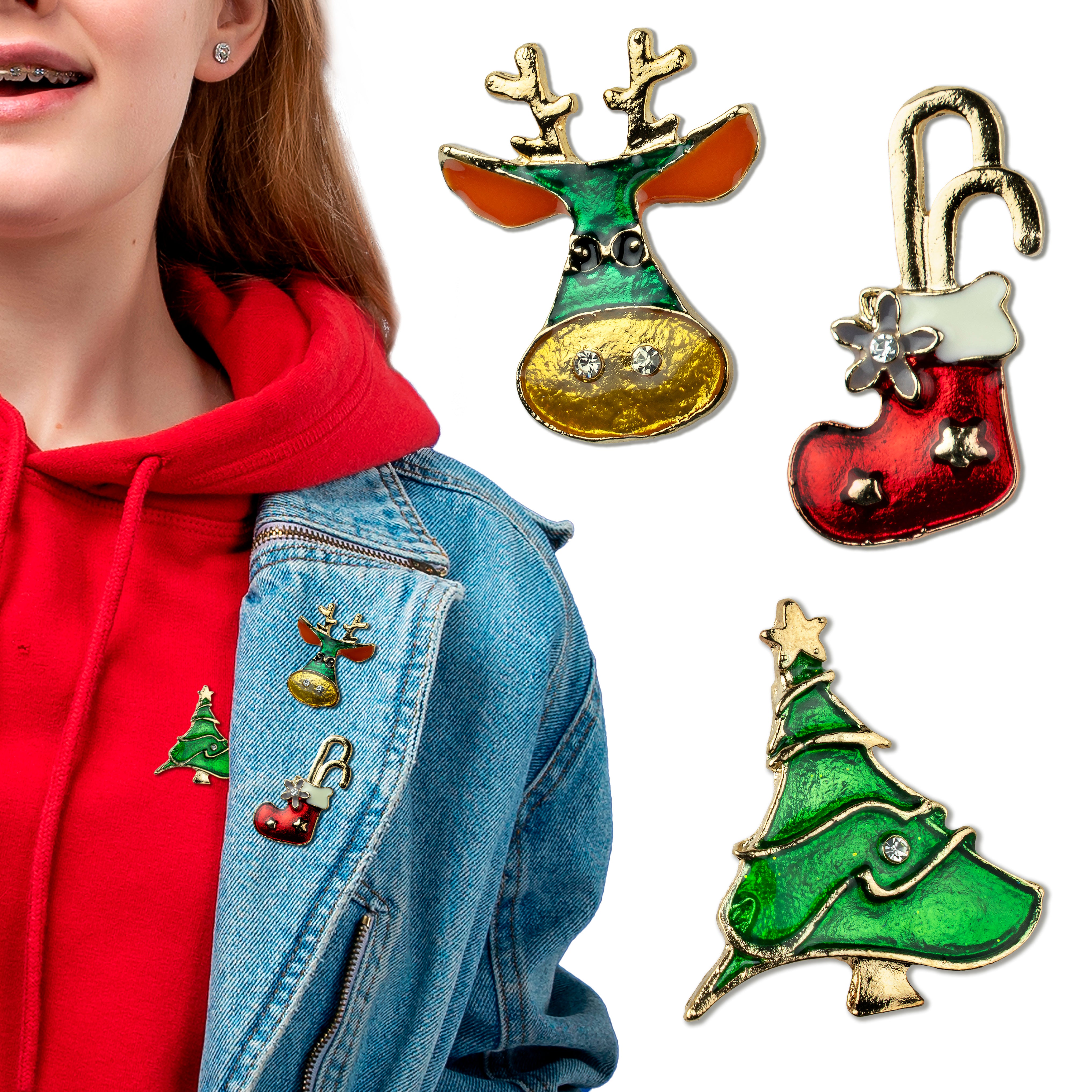 Application: Pins with shiny crystals have classic, Christmas patterns. A set of Christmas brooches will be suitable for Christmas parties, themed parties, family and friend gatherings, and are also perfect for everyday use.