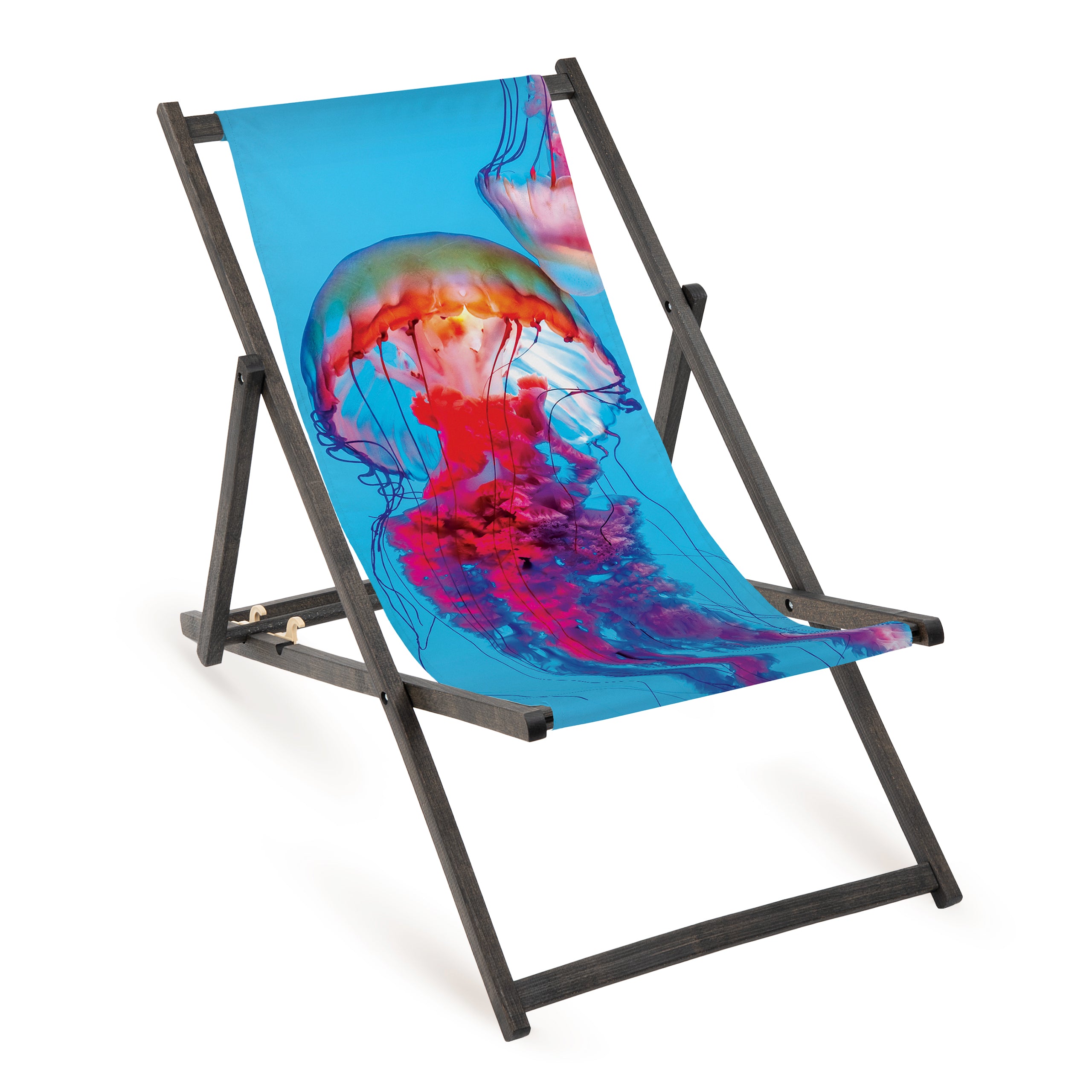 Choose the wooden beach deckchair with the MEDUSA print and create your own relaxation zone that is comfortable, stylish, and ready for any summer sun.