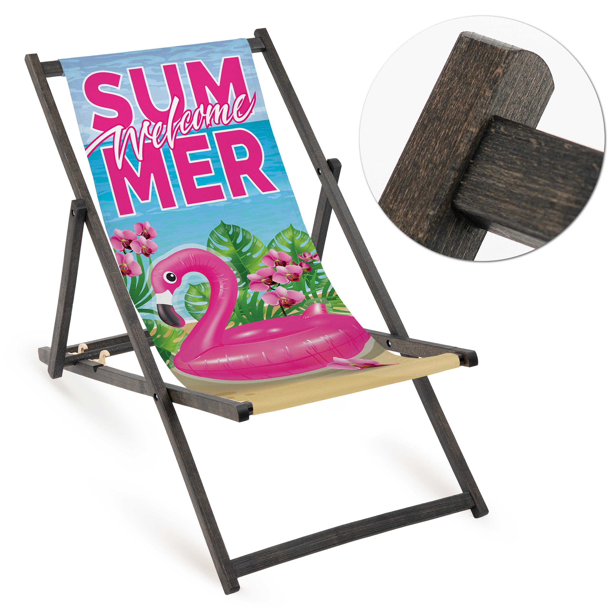 WELCOME SUMMER Wooden Deckchair - Black Frame is backordered and will ship as soon as it is back in stock.