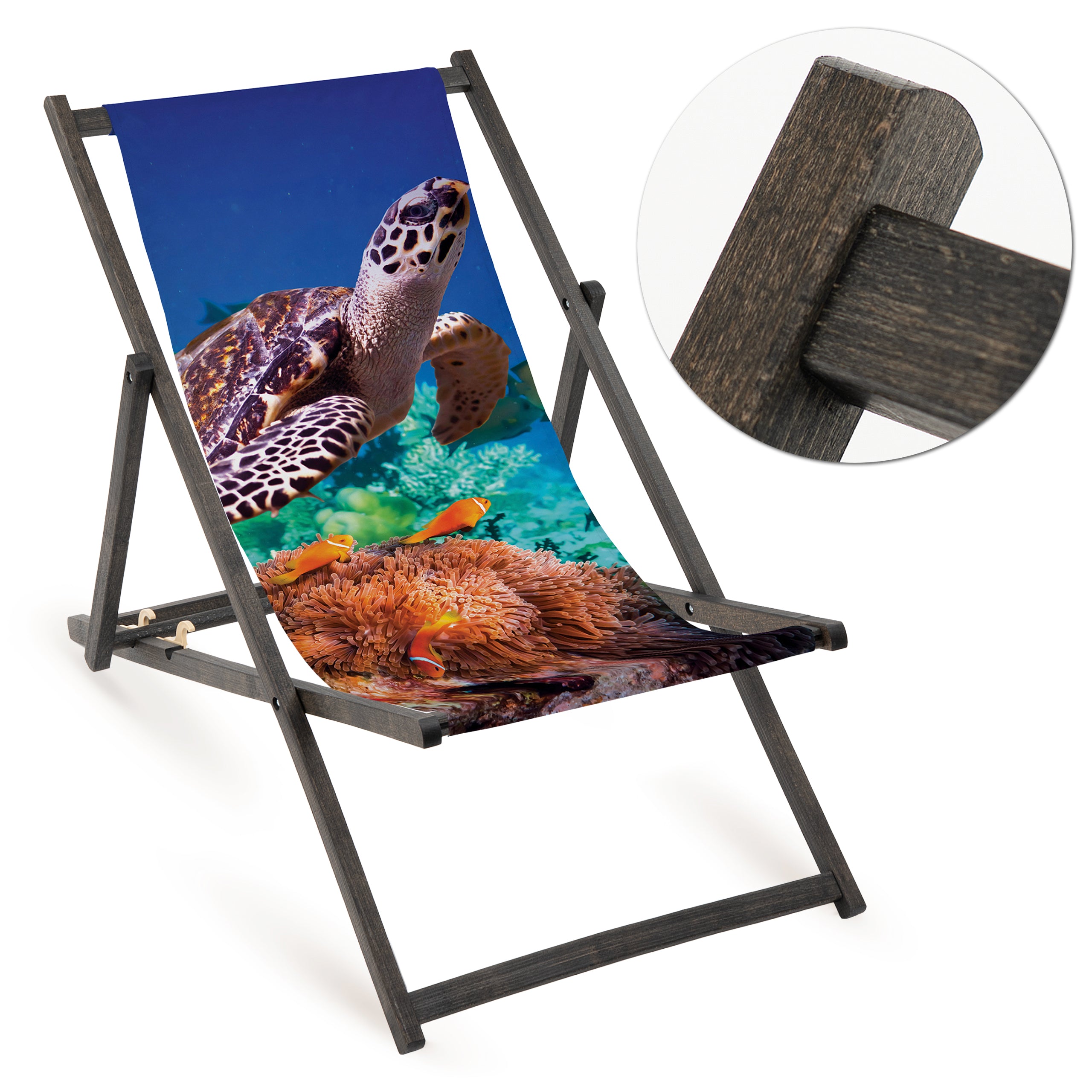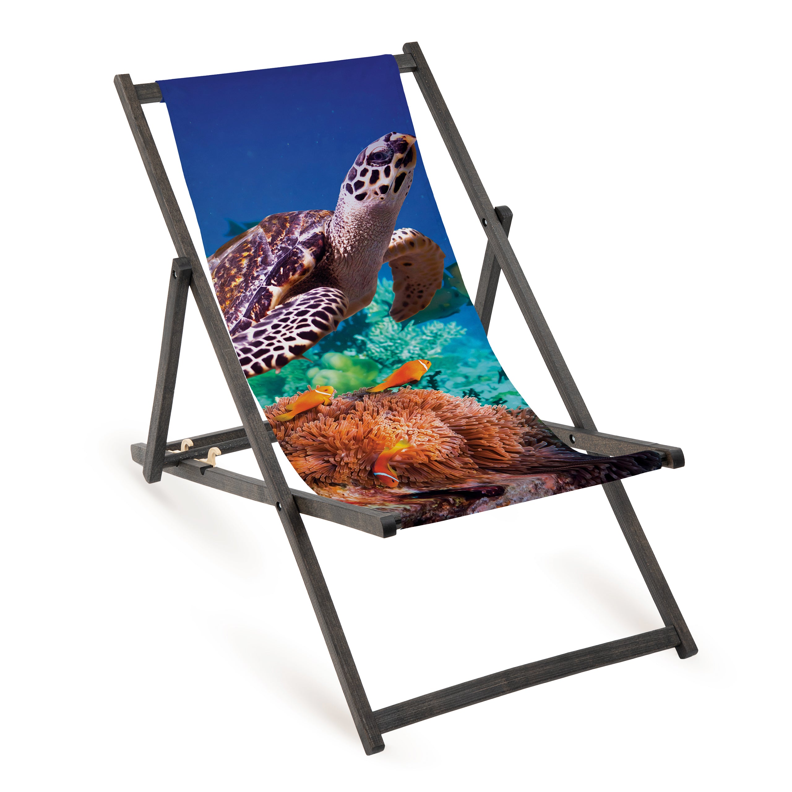 Choose the wooden beach deckchair with a TURTLE print and create your own relaxation zone – comfortable, stylish, and ready for any summer sun.