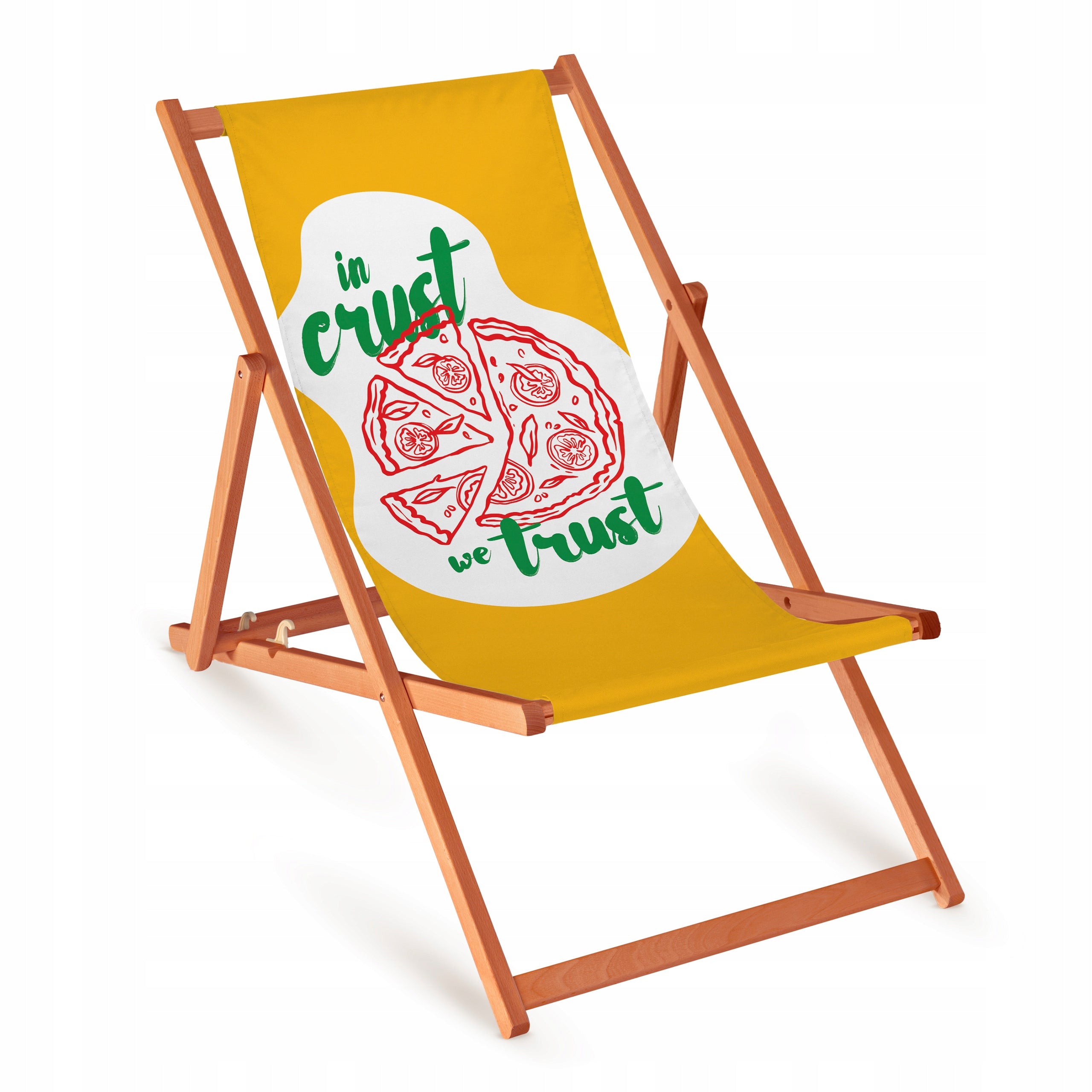 Choose a wooden beach lounger with the IN CRUST WE TRUST print and create your own relaxation zone that is comfortable, stylish and ready for any summer sun.