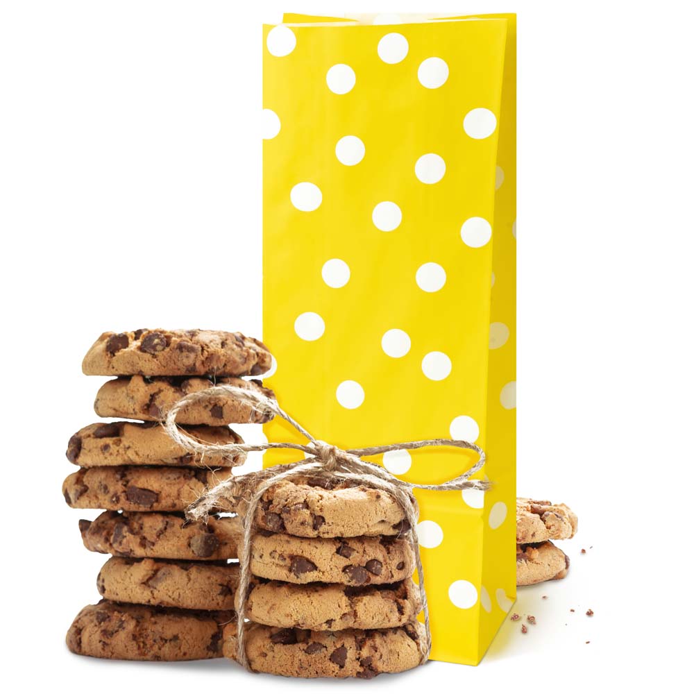 Block paper bag 100x70x280 mm with polka dots Yellow 10 pcs.