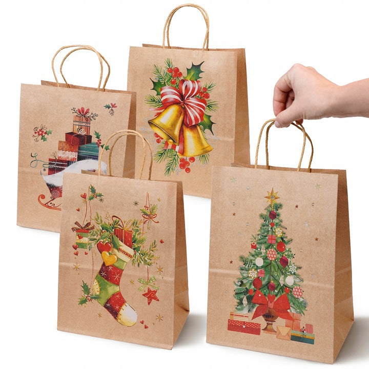 • Application: Paper bags are perfect for wrapping Christmas gifts, they can also be used as shopping bags or as a decorative element during holiday parties .