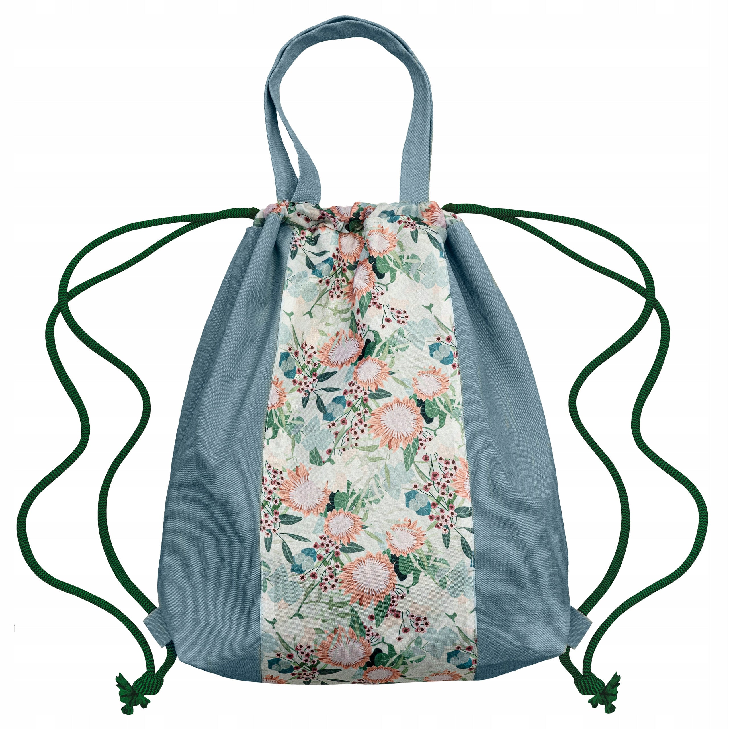 Plecak Worek Bawełniany Niebieski 380x420mm Kwiaty