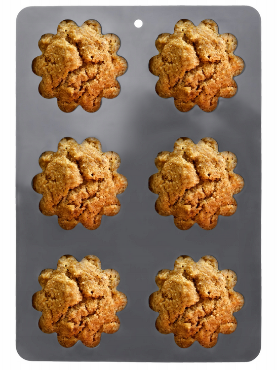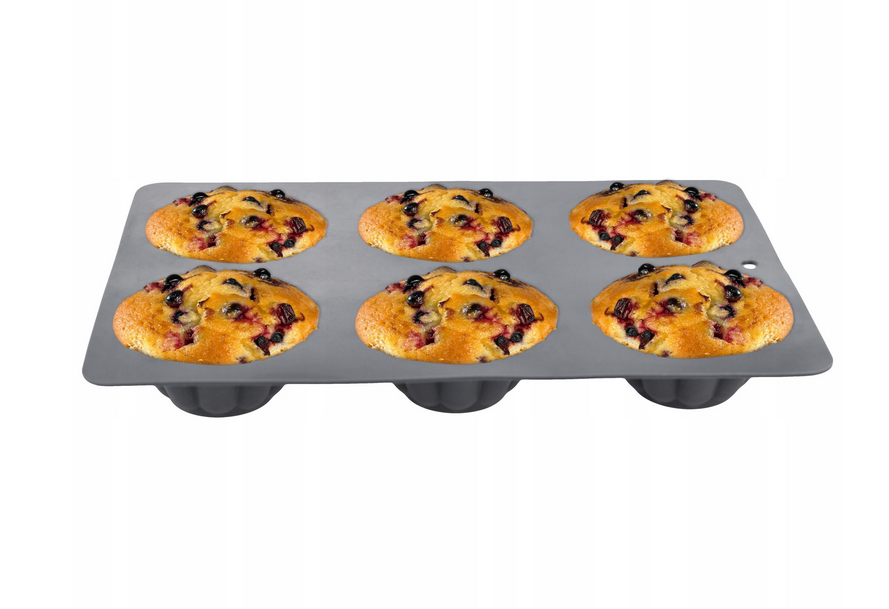 • The form has 6 places for cupcakes with classic proportions - each has a diameter of 7 cm, depth of 3 cm, and the entire form measures 26 cm in length and 18 cm in width.