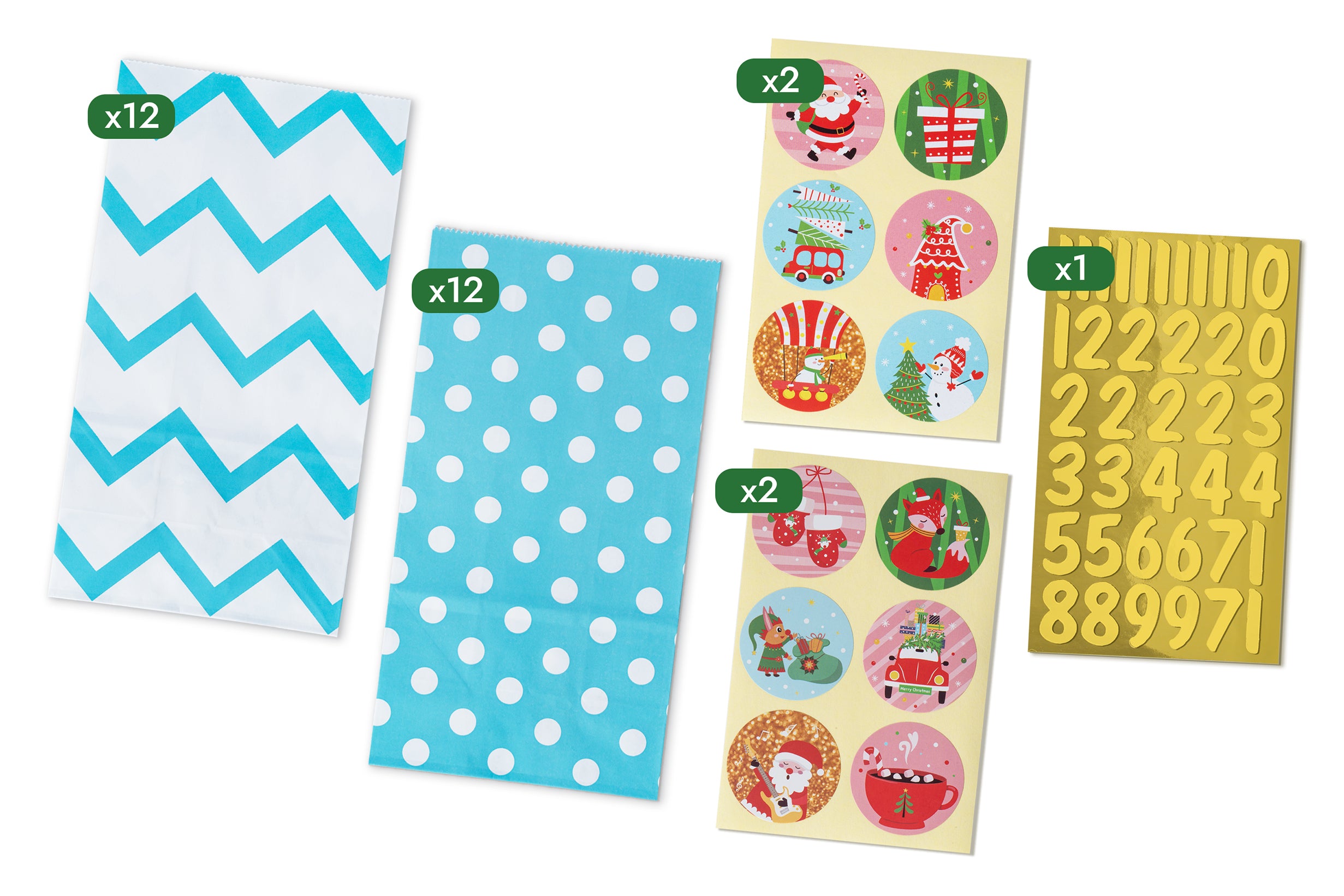 - Stickers: 25 Christmas stickers, 24 stickers with numbers from 1-24