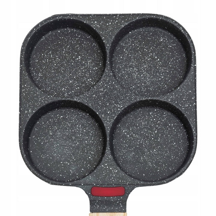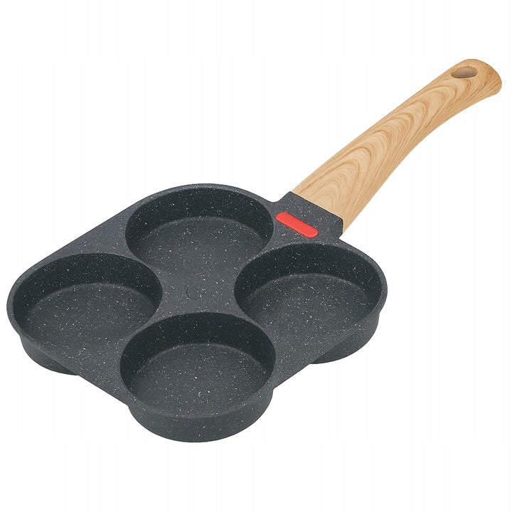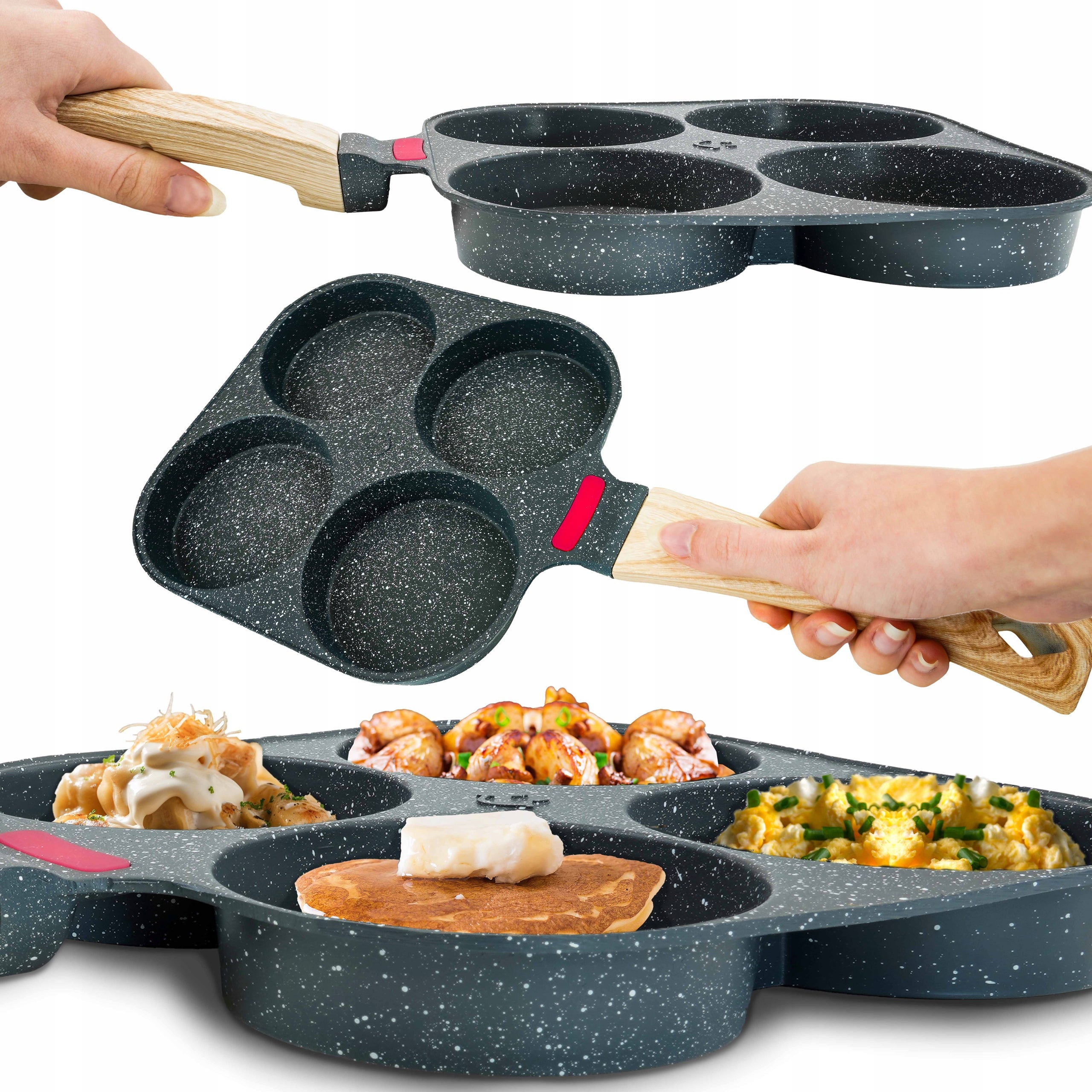 Choose an induction egg frying pan with a non-stick coating and a wooden handle. Perfect for fried eggs, pancakes, and omelets. Cook four servings at once , healthier and mess-free. Order this practical 4-compartment breakfast pan today!