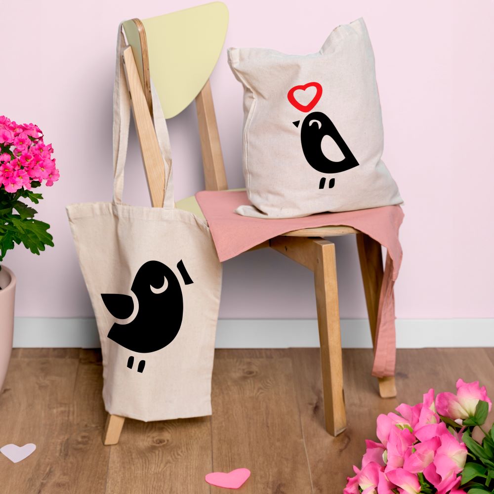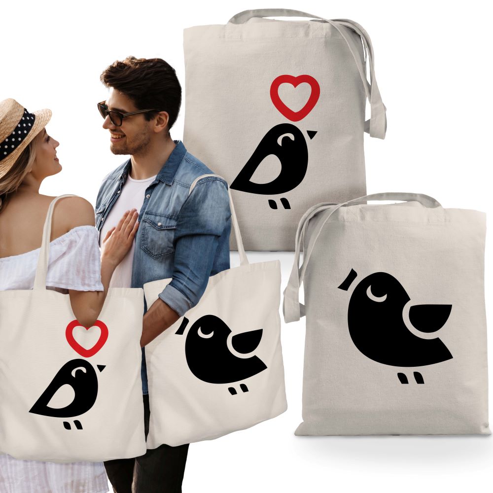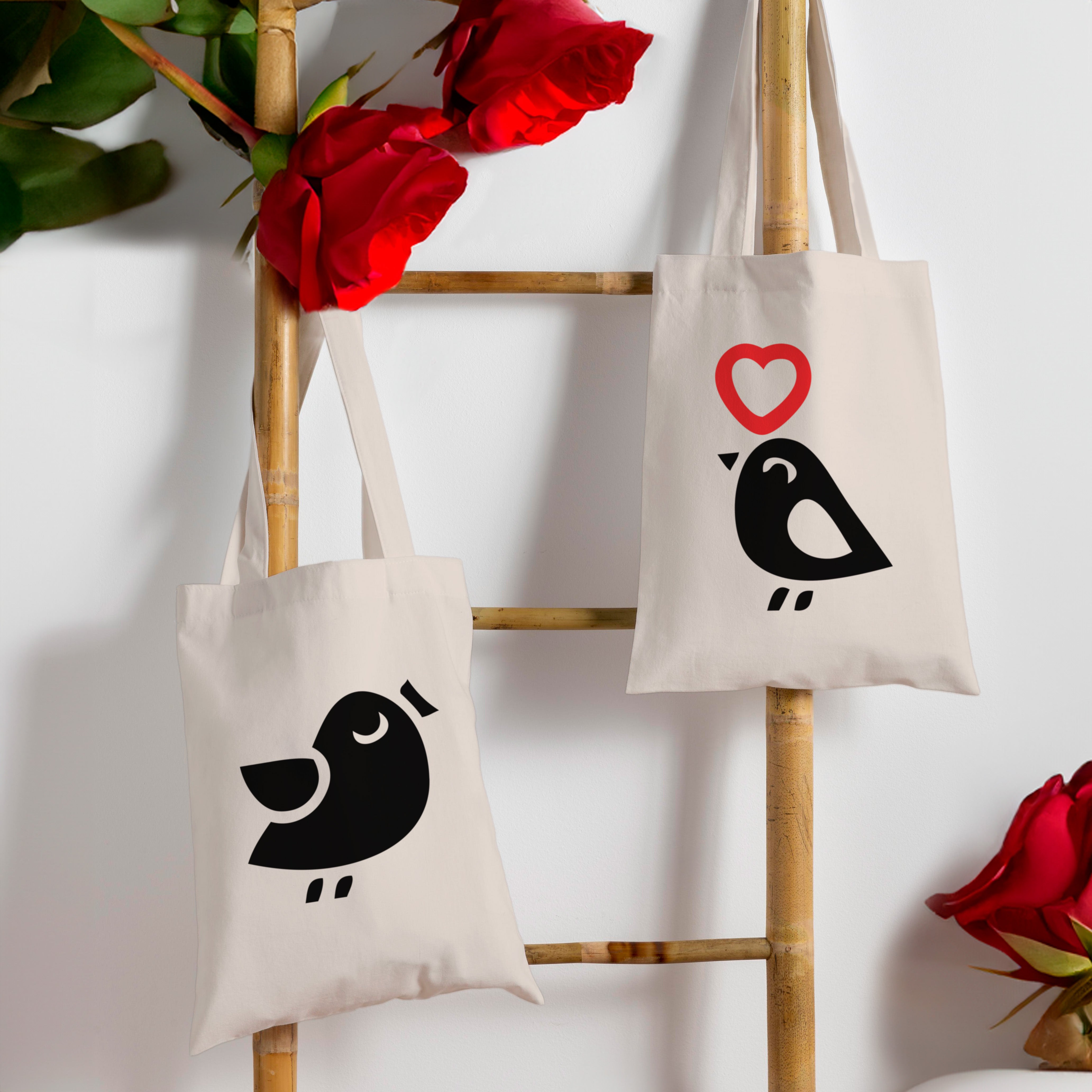 Two cotton bags with print. A perfect fashion accent for couples and an original gift for Valentine's Day.