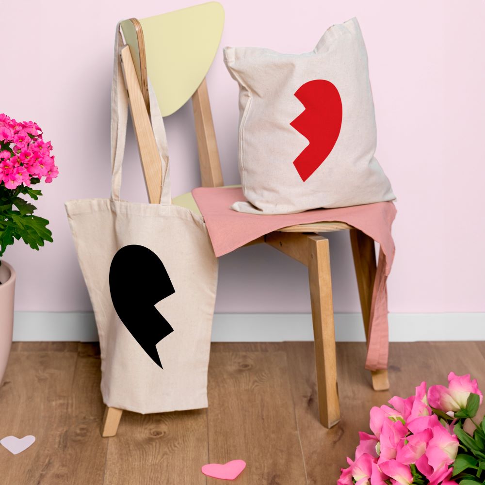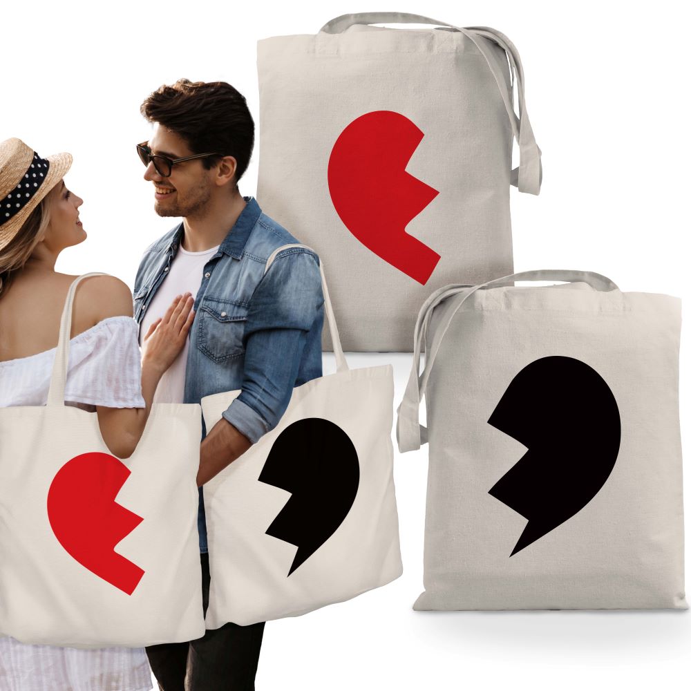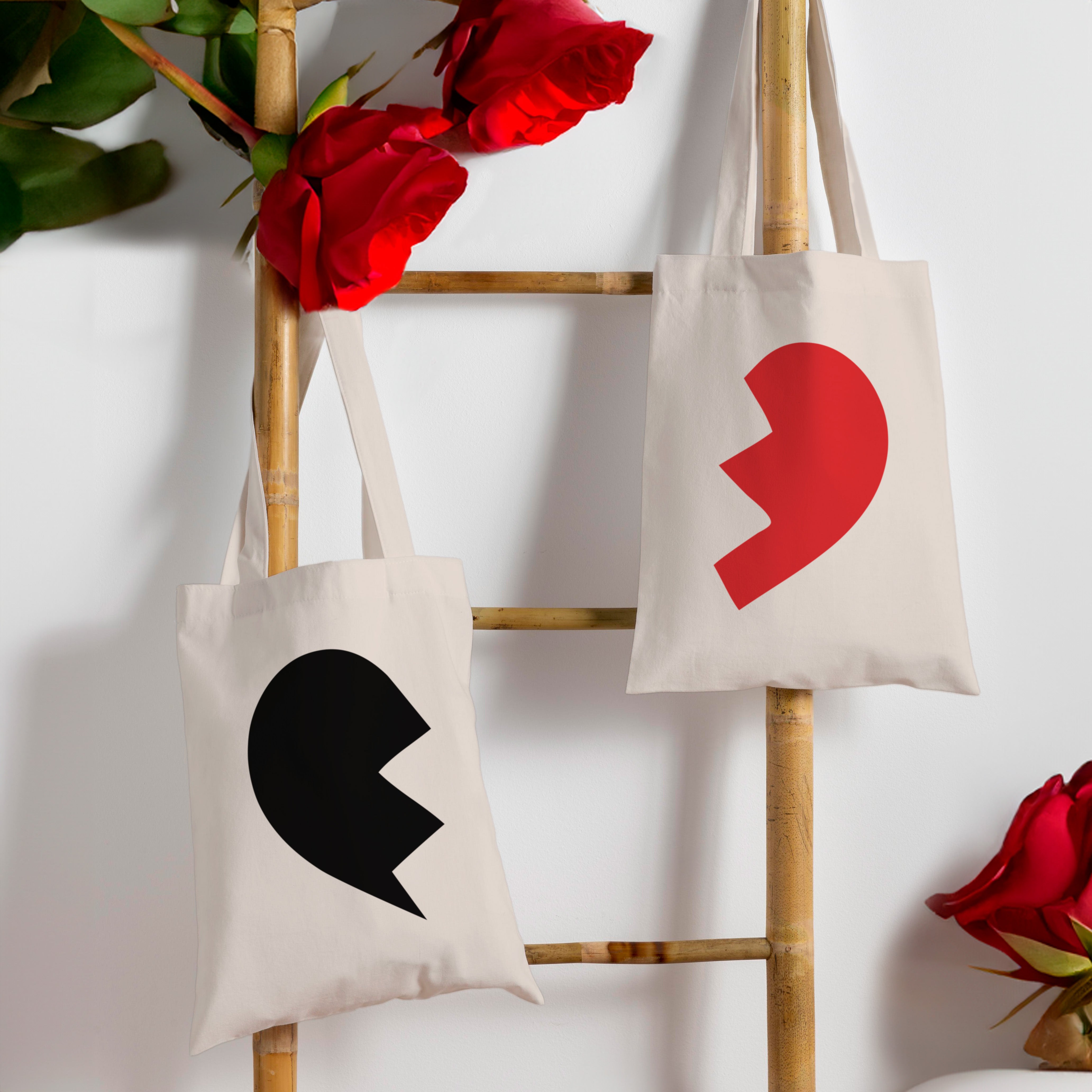 Two cotton bags with print. A perfect fashion accent for couples and an original gift for Valentine's Day.