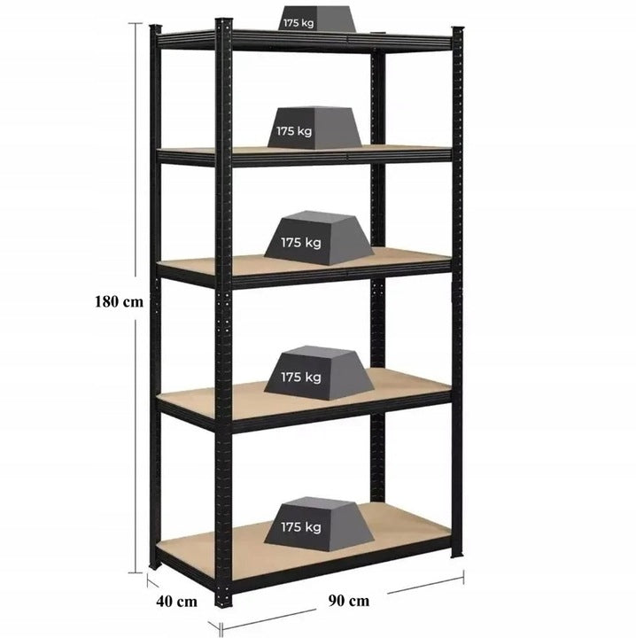 Equipped with five durable shelves that help organize the assortment and maintain order in the workplace. Thanks to the foldable structure, the shelf is easy to transport and assemble. The solid construction guarantees high load capacity - each shelf can withstand a load of up to 175 kg, which allows for safe storage of both lighter and heavier items.