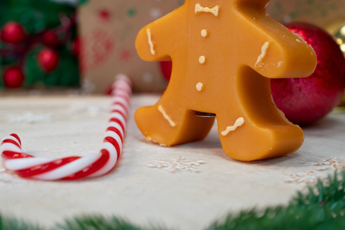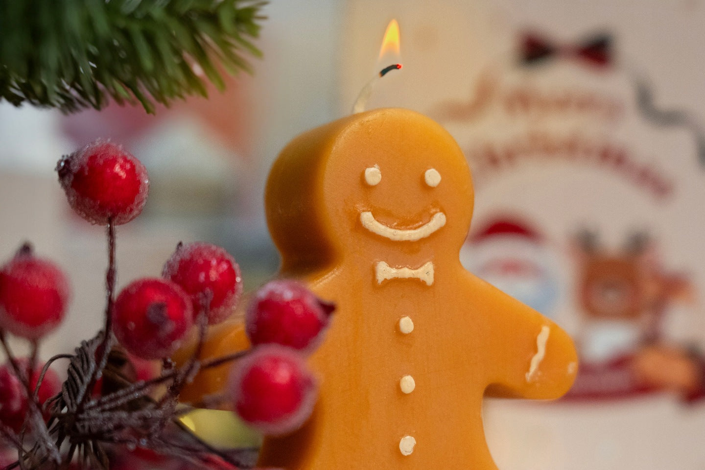 - Christmas soy candle in the shape of a gingerbread: A charming Christmas decoration that also fills the interior with a pleasant aroma