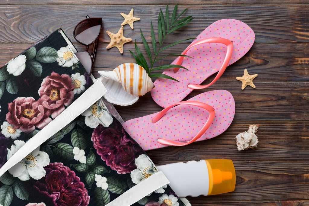 OXFORD Beach Bag Dark Flowers 45x38cm