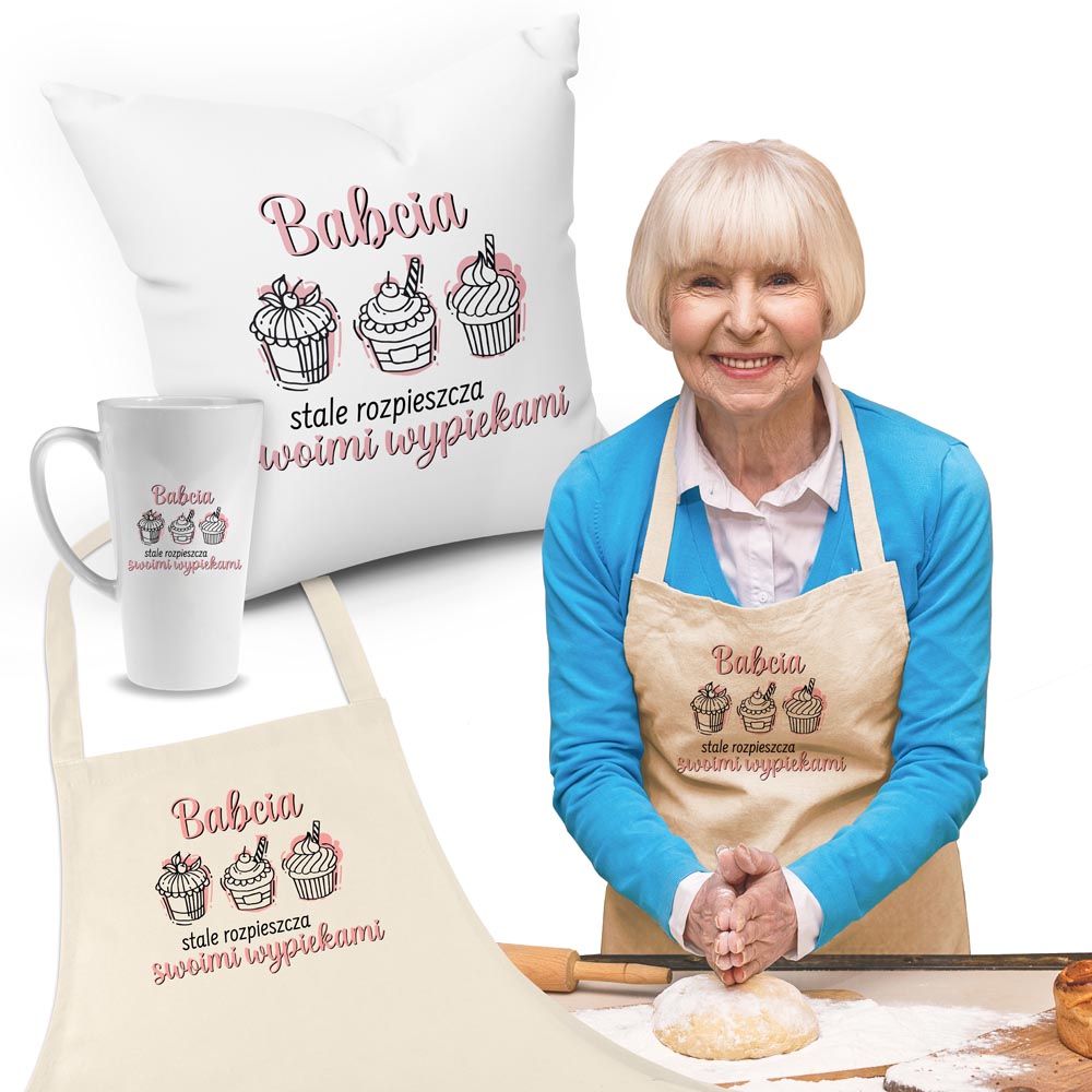 The Grandmother's Day gift set is a lovely way to show your beloved grandmother love and gratitude. It consists of three practical and warm elements: an apron, a mug and a pillow. An apron with a funny or personal motif will be perfect for cooking or baking, adding joy to the kitchen. A mug with a heartfelt inscription will make every sip of your favorite drink more pleasant, and a soft pillow will provide comfort and relaxation during rest. Such a set is a perfect, thoughtful gift that will surely bring a smile to the face of every grandmother.