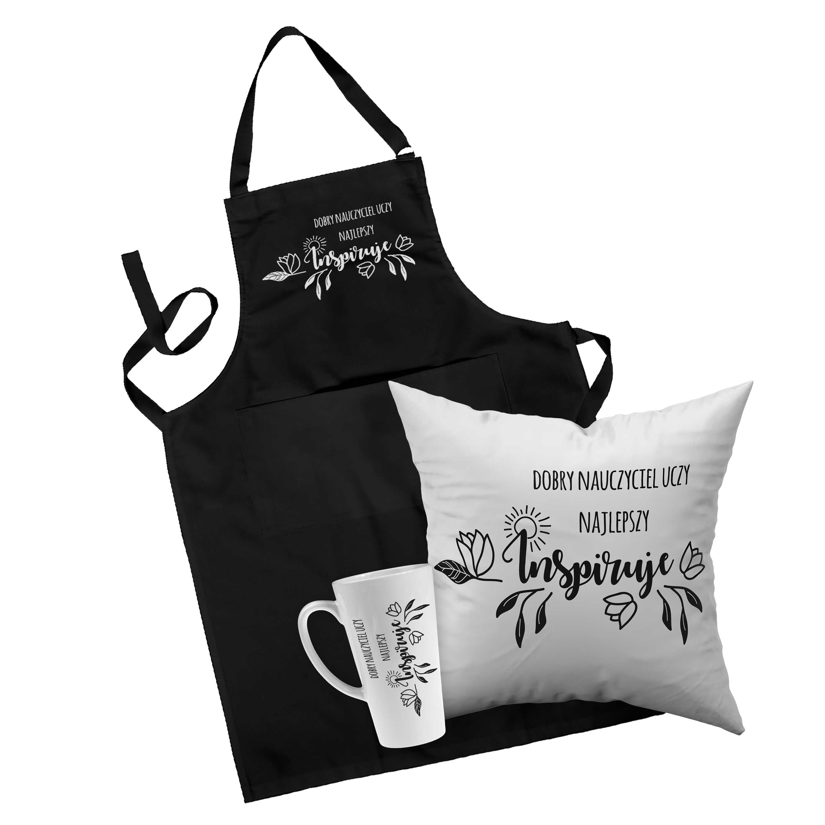 A gift set in the form of a mug, an apron and a pillow is a unique gift. It is a functional and decorative product. It will be perfect as a gift for every teacher on their annual holiday or as a thank you gift.