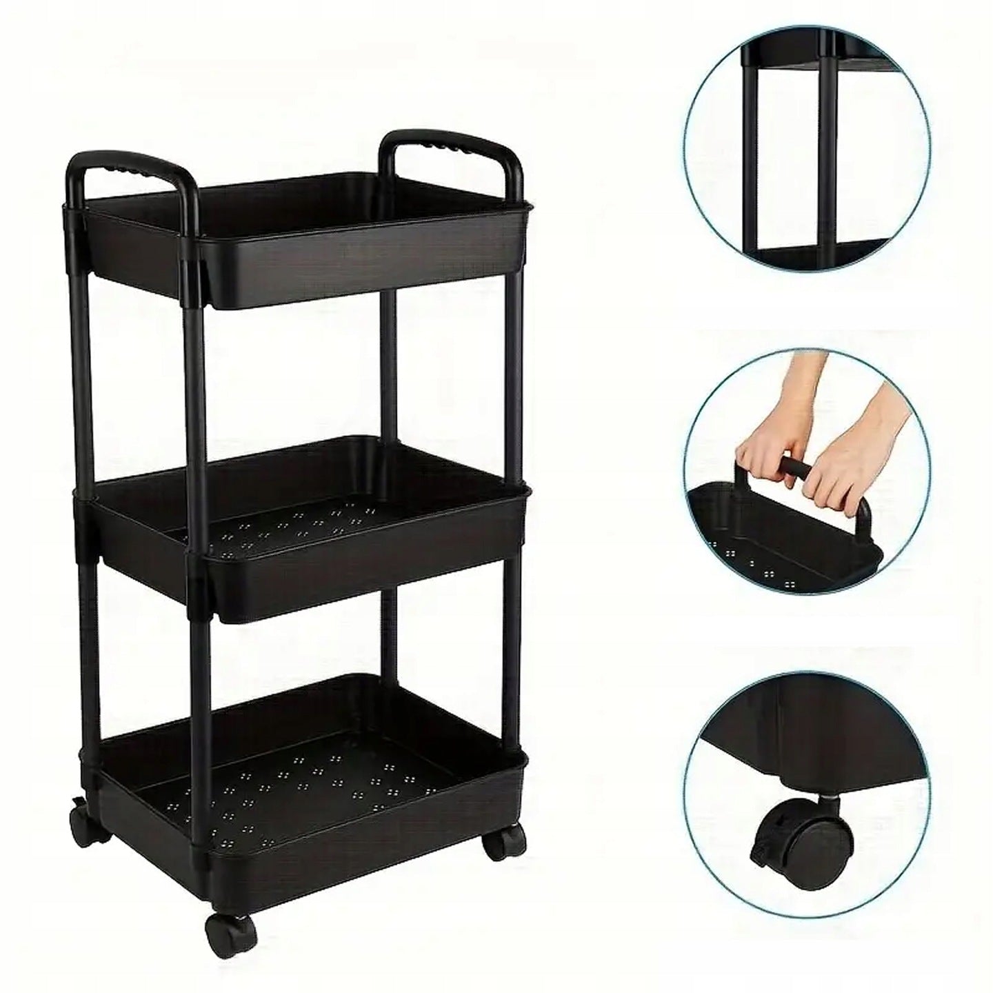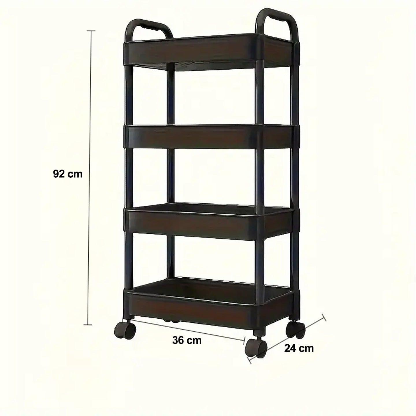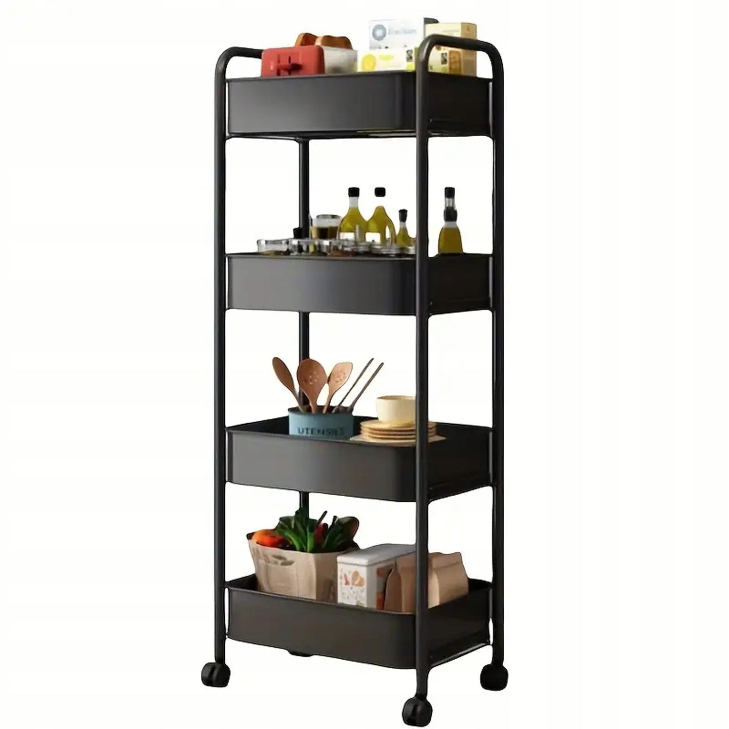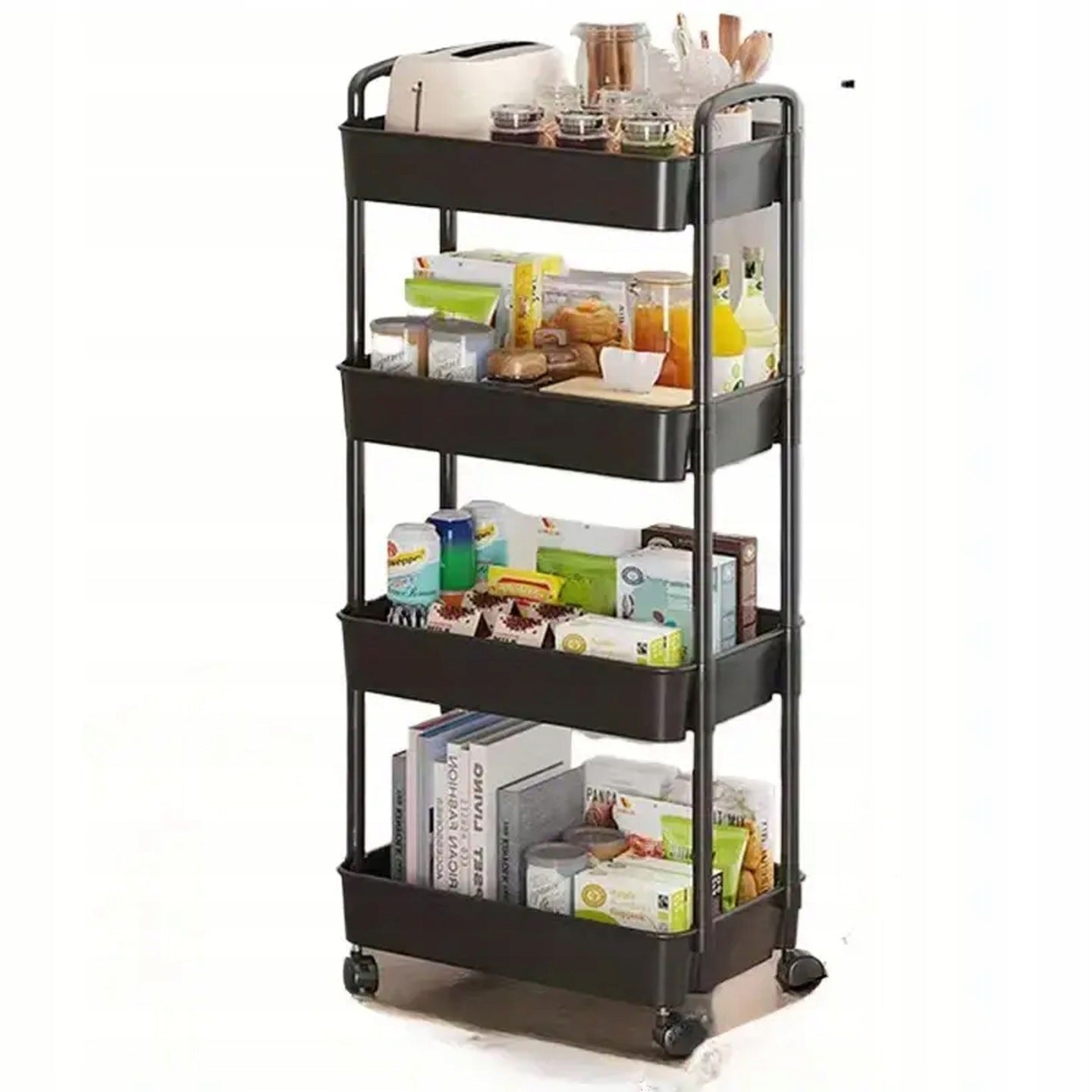 Czarna półka łazienkowa, kuchenna, szafka na kółkach - regał 4 poziomy