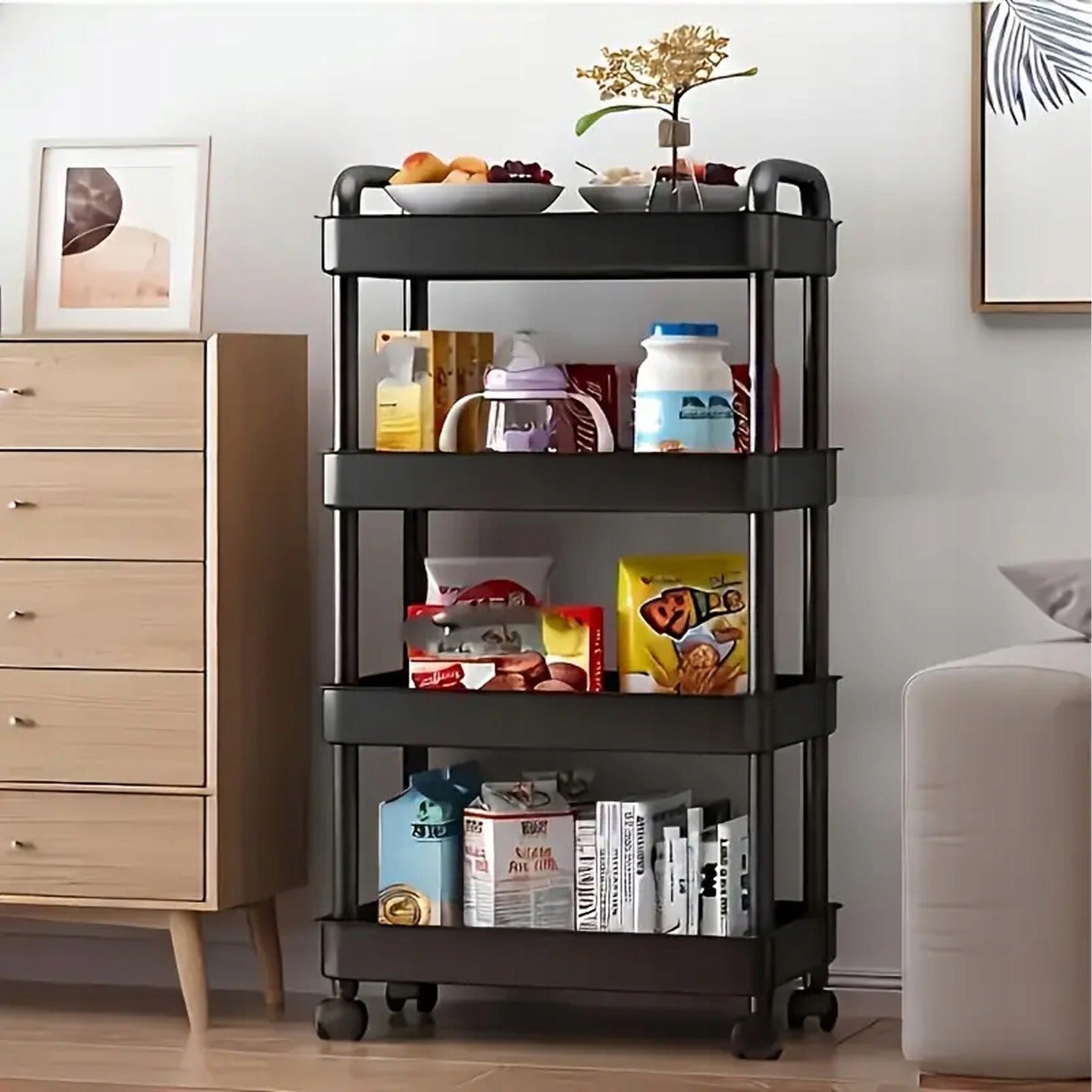 Czarna Półka, Szafka na Kółkach 4 Poziomy Jest zamówiony z opóźnieniem i zostanie wysłany, gdy tylko pojawi się ponownie w magazynie.