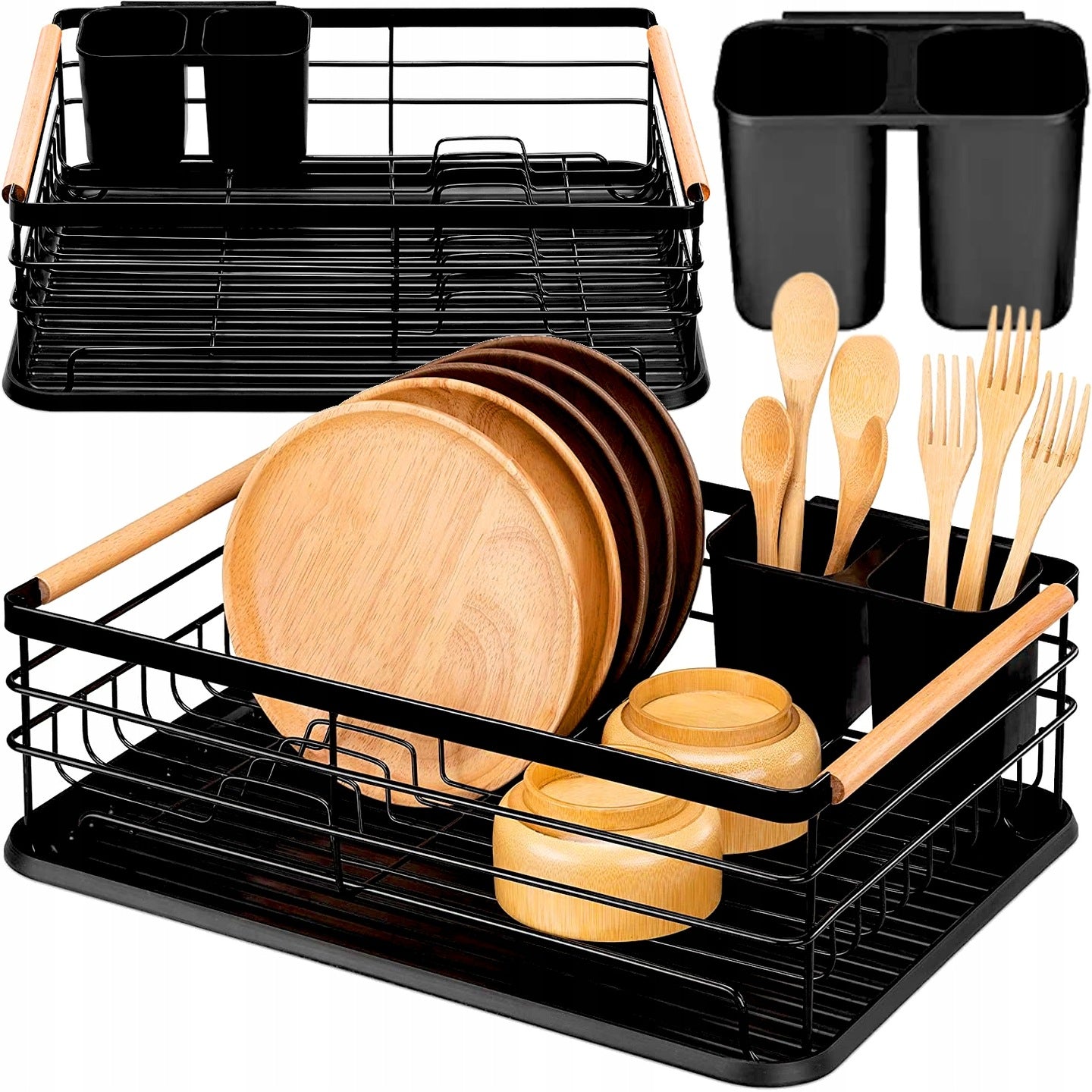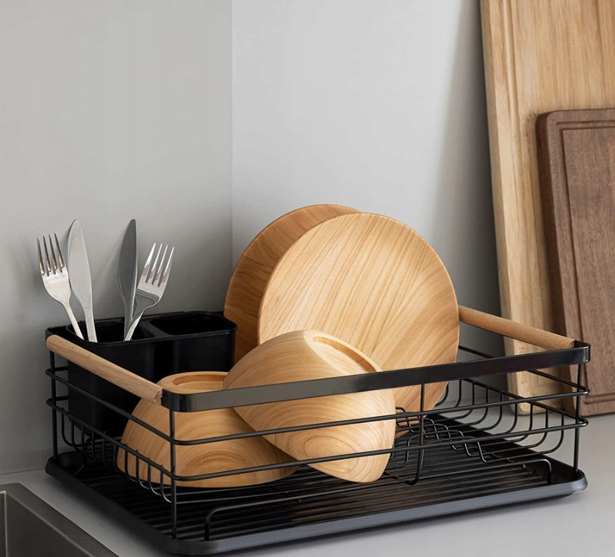 ✔️Metalowa czarna suszarka z drewnianymi rączkami jest eleganckim rozwiązaniem do każdej kuchni!