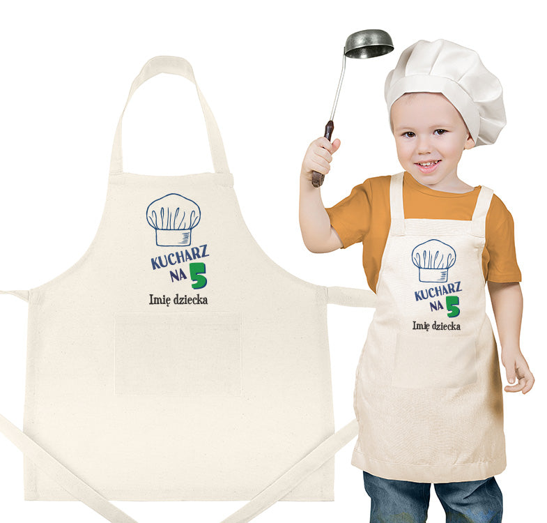 Fartuch dziecięcy KUCHARZ NA 5 + IMIĘ