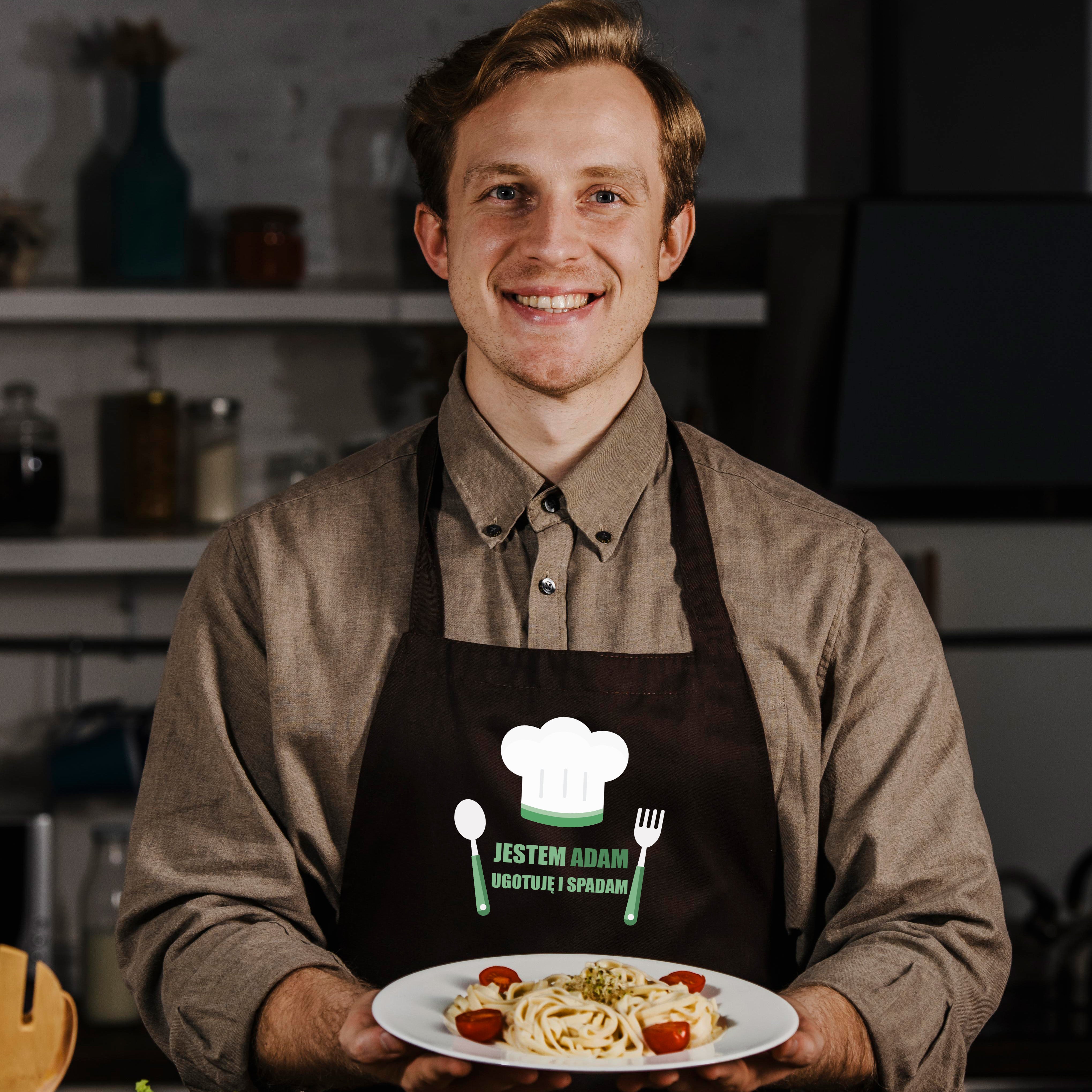 Fartuch kuchenny bawełniany UGOTUJE I SPADAM+ IMIĘ