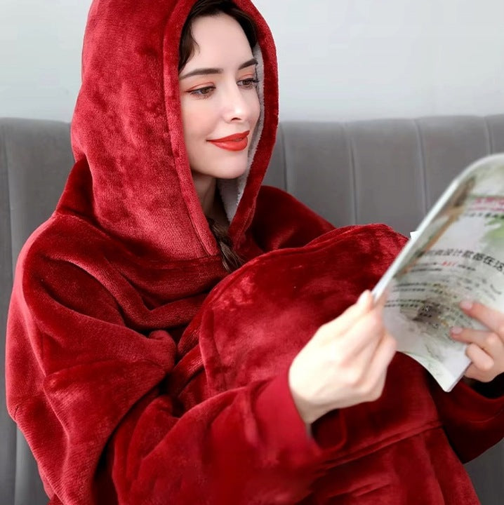 Ta wyjątkowo miękka i gruba bluza z kapturem, w formie otulającego szlafroka, to idealne rozwiązanie na zimowe dni i wieczory. Jej wygodę docenią zarówno panie, jak i panowie.