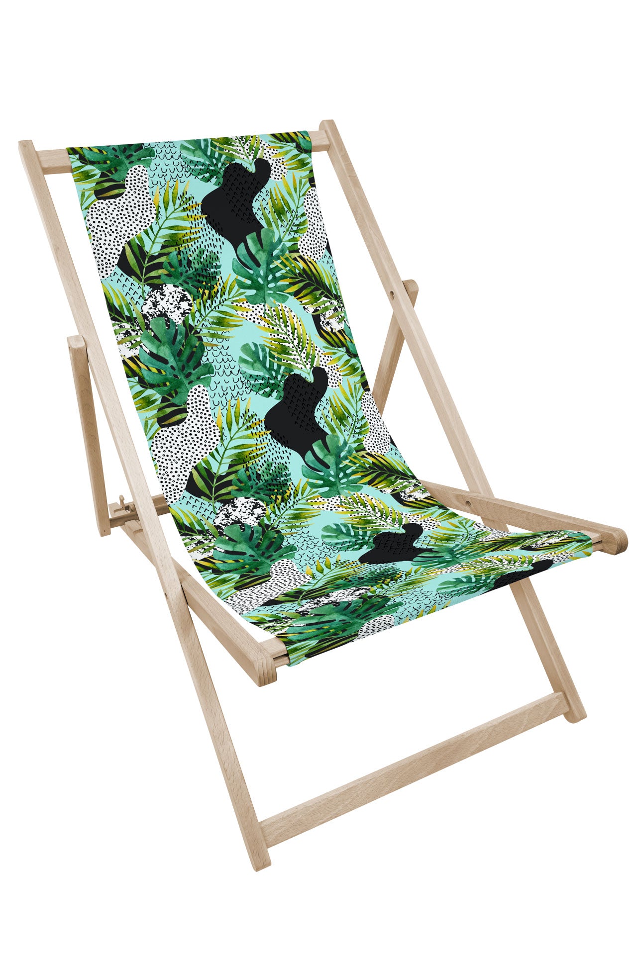 Leżak drewniany z nadrukiem GREEN LEAVES COLLAGE