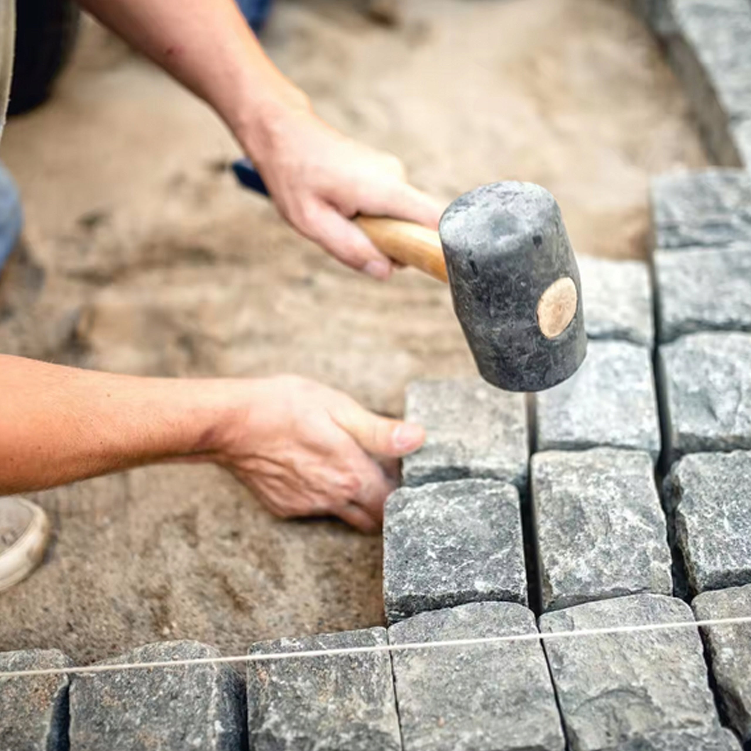 Wykonany z gumy zapobiegnie niszczeniu uderzanych materiałów – kamienia, cegieł czy innych wyrobów ceramicznych.