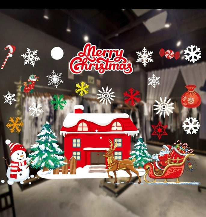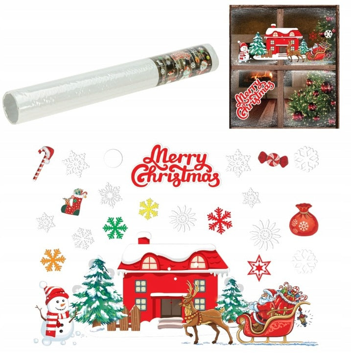 Świąteczne wzory: Naklejki dekoracyjne na szybę zostały stworzone ze świątecznymi motywami - zaprzęgiem Świętego Mikołaja, bałwankiem, śnieżynkami, prezentami, napisem Merry Christmas oraz świątecznym domkiem.