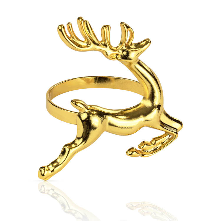 Zamów złoty pierścień na serwetki z motywem renifera. Świąteczna obrączka do serwetek idealna na Wigilię i Boże Narodzenie. Dodaj do koszyka i stwórz elegancką dekorację stołu w kilka sekund: renifer, połysk złota, perfekcyjnie ułożone serwetki!
