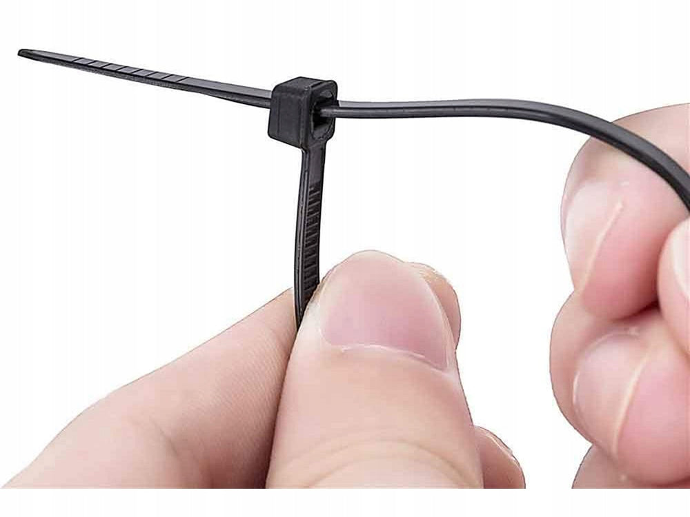 Łatwość użycia: Trytytki są bardzo proste w użyciu – wystarczy umieścić opaskę wokół przedmiotu, przeciągnąć przez zacisk, a następnie zaciągnąć na odpowiednią długość. Raz zaciśnięta opaska pozostaje stabilna i niezawodna, zapewniając solidne mocowanie.